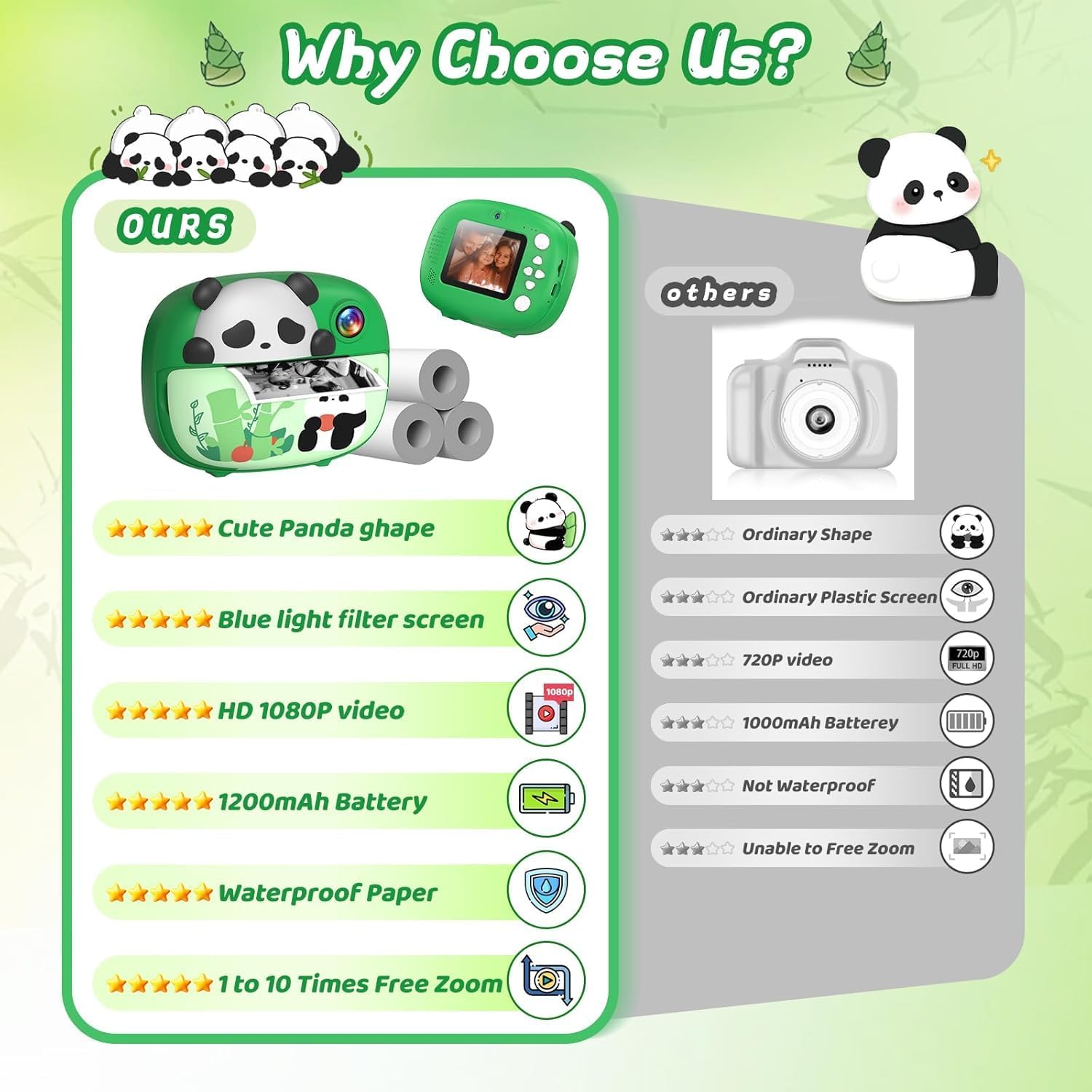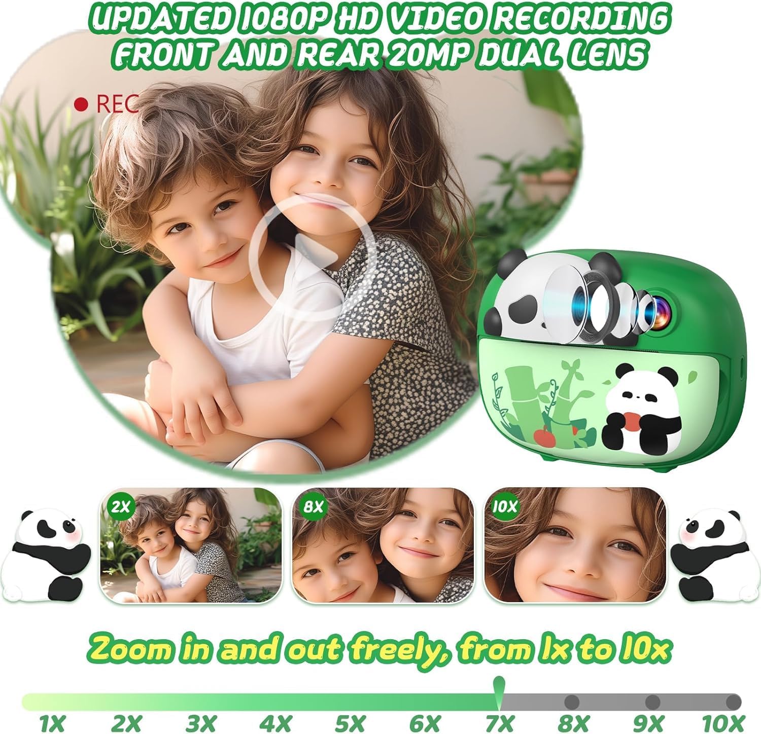 A CAMERA DESIGNED WITH LOVE: Meet the instant camera for children, designed by American designer José. Among a zoo of animal designs, he chose the adorable panda. This tender creature is all about warmth and happiness. With this instant print kids camera in hand, your kids can embark on a delightful journey of growth, capturing moments filled with joy and friendship along the way.