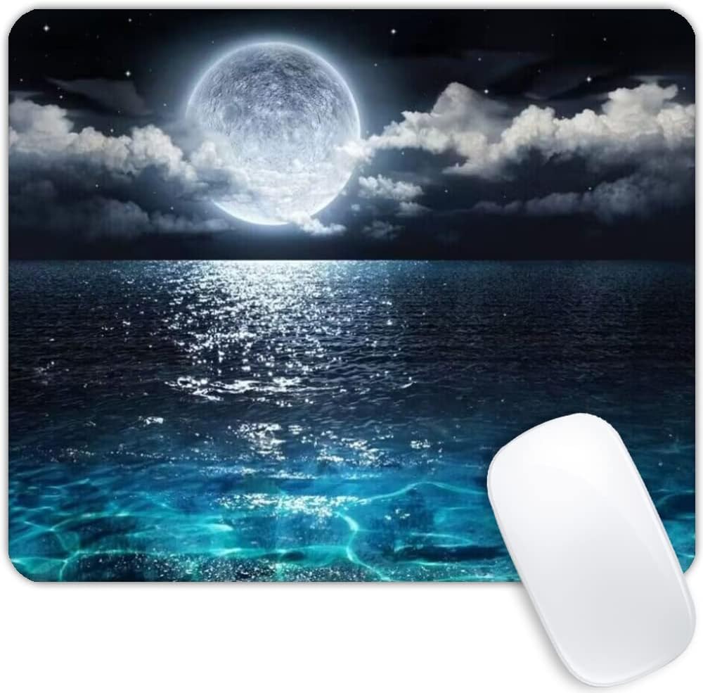 Personalized Ocean and Moon Mouse Pad, Rubber Mouse Pad for…