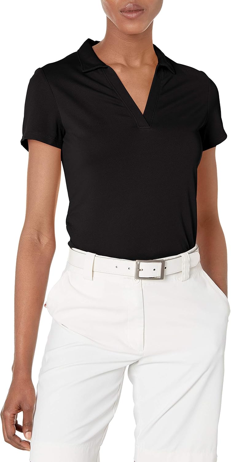 Keep fresh and elegant in the golf course in this PGA Tour Women's Golf Polo. Made of light and innovative mesh fabric with Airfux technology, the ladies' golf shirt is designed to maximize air flow to stay comfortable on hot days in the course. Moisture reduction provides a dry adjustment by moving away the perspiration of your skin. UPF incorporated 50 solar protection prevents harmful UV rays from penetrating the material of women's golf clothing in bright and sunny days. Stretching on shoulder seams and at all times allows you to move easily and balance gently with a maximum movement range. With a contoured adjustment and an open V neck necklace, the ladies' golf clothing provides a flattering and female style that looks very good in the golf field or in the city on casual weekends. Easy to take care of, the top of the ladies short manga golf can be washed by machine to refresh it after a golf round. It looks very well paired with a golf skort, shorts or pants for an outfit it performs.