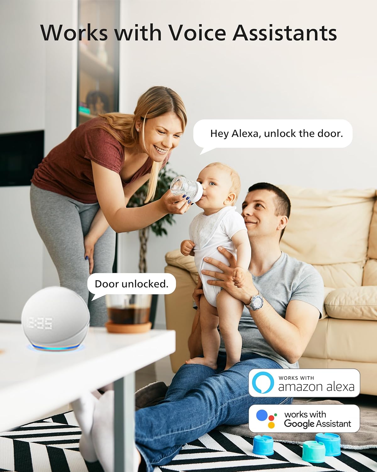 Works with Voice Assistants: This keyless door lock integrates seamlessly with Amazon Alexa and Google Assistant. You can effortlessly lock or unlock your door using your voice, bringing a new level of convenience to your smart home.