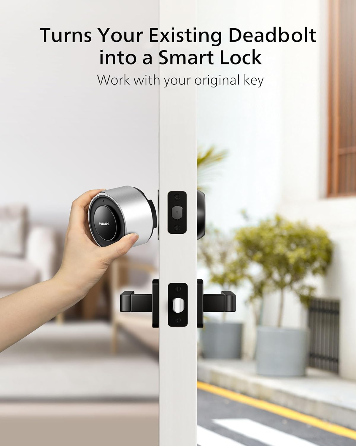 Turn your existing deadbolt into a smart lock: The Philips Wi-Fi retrofit smart lock turns your existing deadbolt into a smart lock, adding several smart control features to your traditional door lock. There’s no need to change the hardware or appearance of your door lock, preserving the style of your home. It also remains compatible with your original keys.