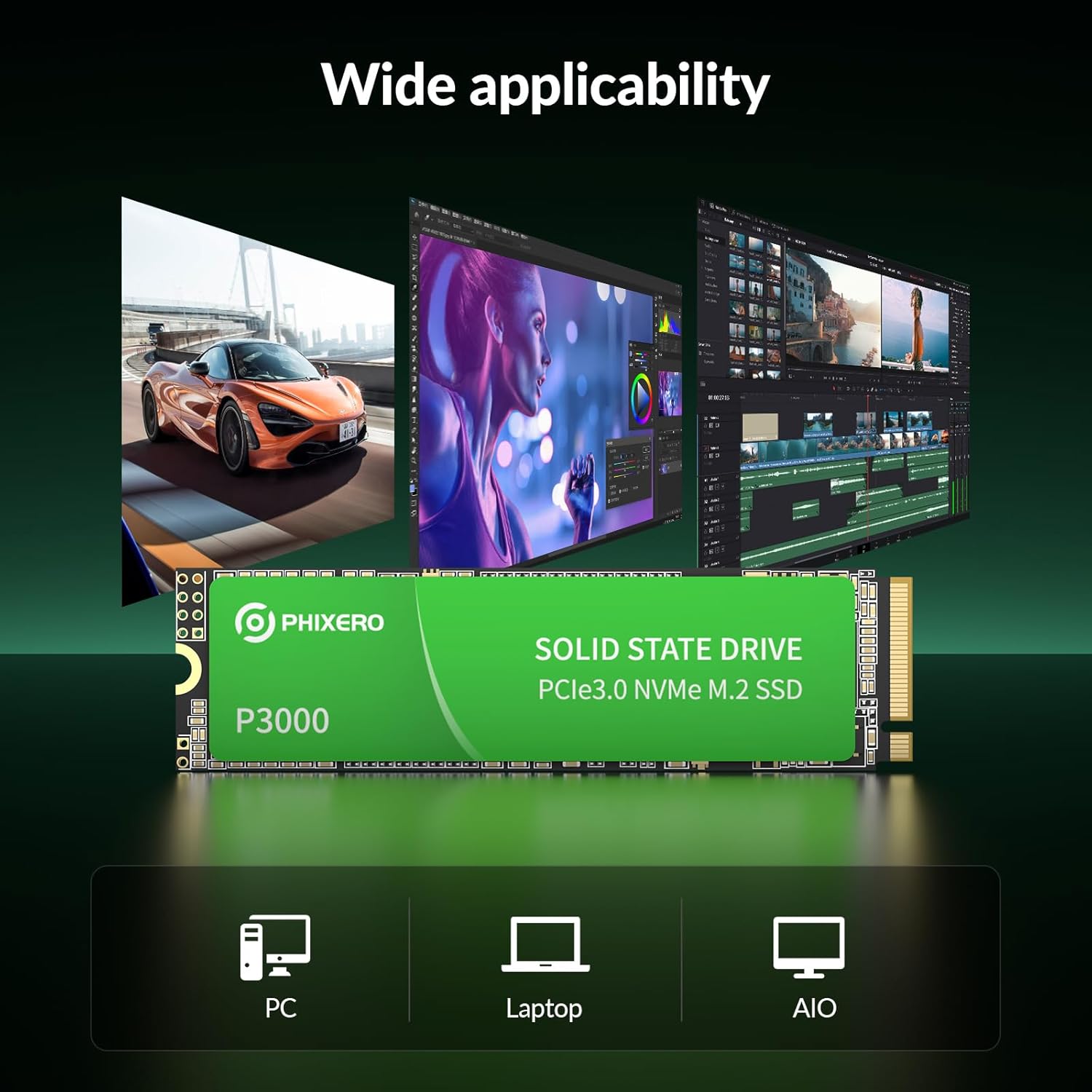 Multiple Options: PHIXERO P3000 SSD series offers a variety of capacity options from 512GB to 4TB to meet the needs of different game library capacities, ensuring gamers can store a large number of games and multimedia content.
