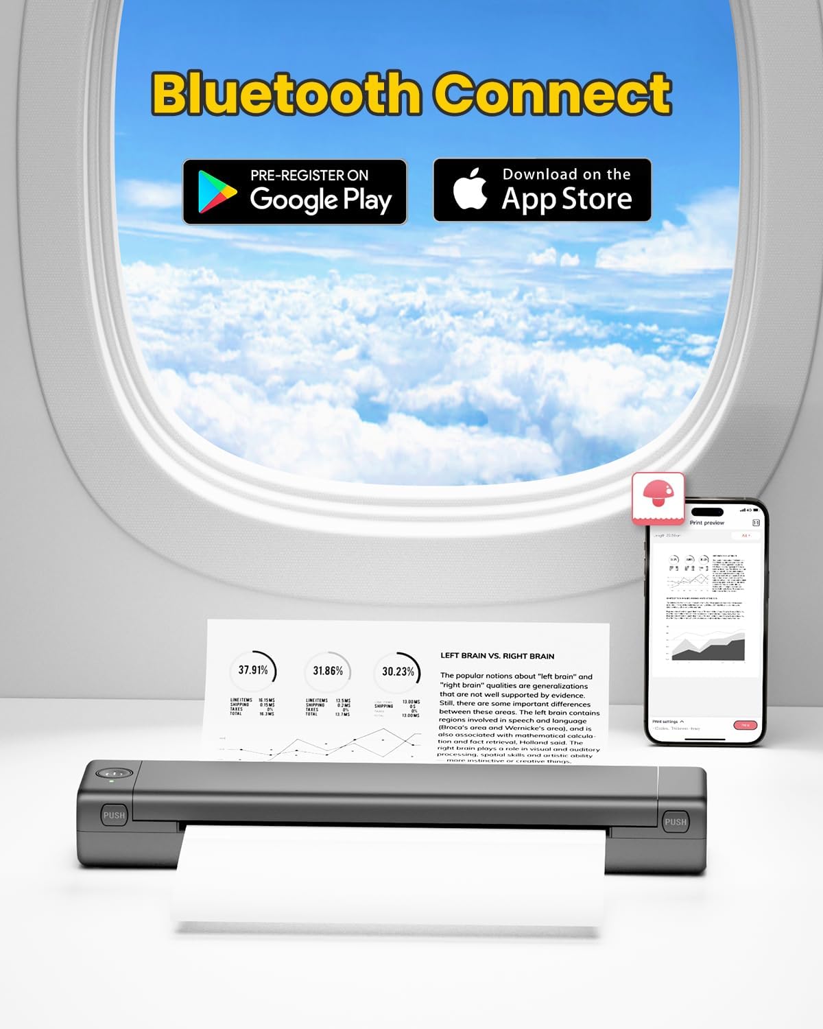 Bluetooth printer – Go Wireless by Bluetooth: Obtain the “Phomemo” application of Google Play or Apple Store to print through Bluetooth in its portable thermal printer for iOS and Android. (Note: mobile devices cannot be connected directly to Bluetooth and should be used through the Phomemo application).
