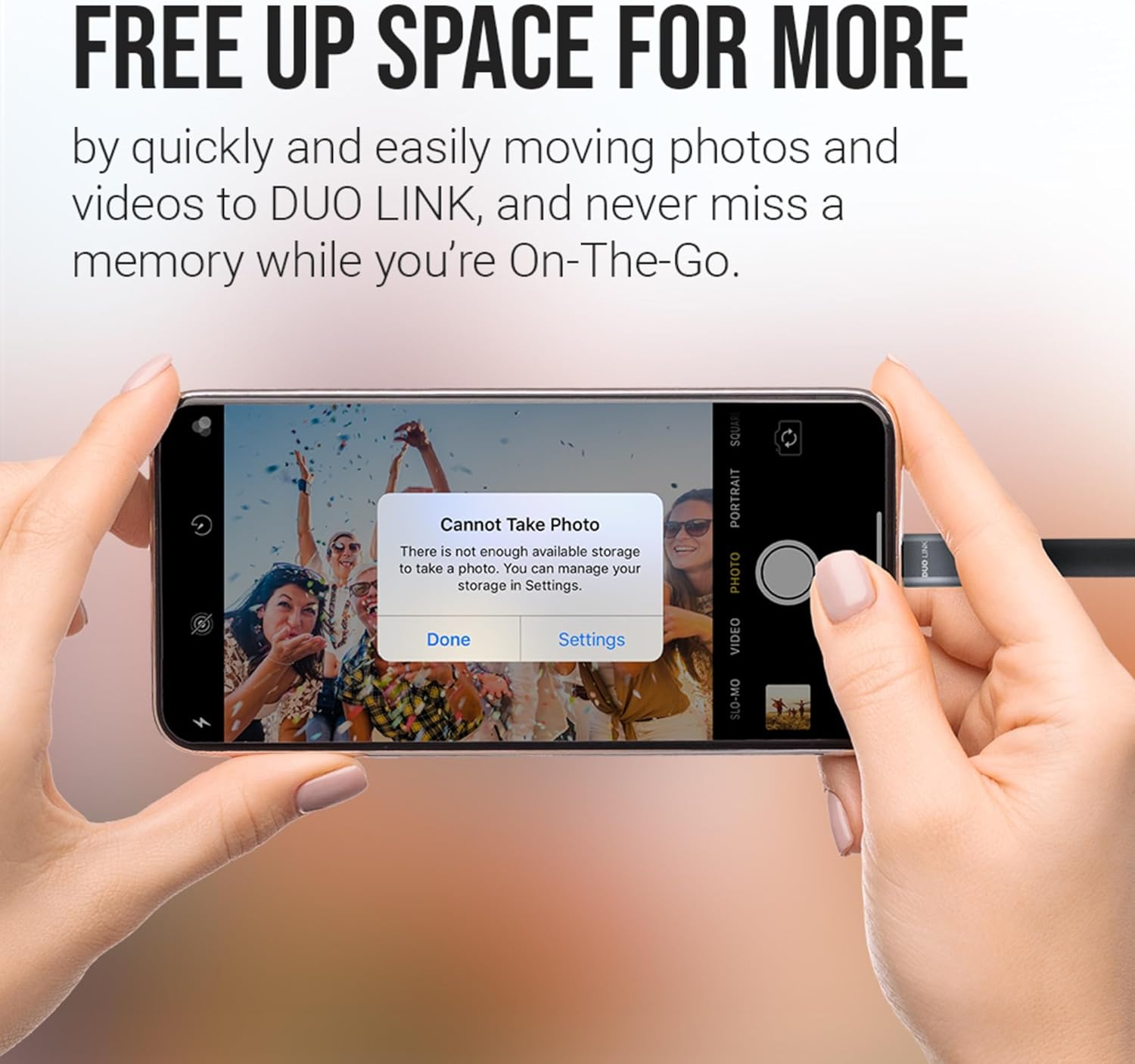 Free up space on your iPhone and iPad by transferring photos, videos, and more to the Duo Link USB 3.0 OTG flash drive