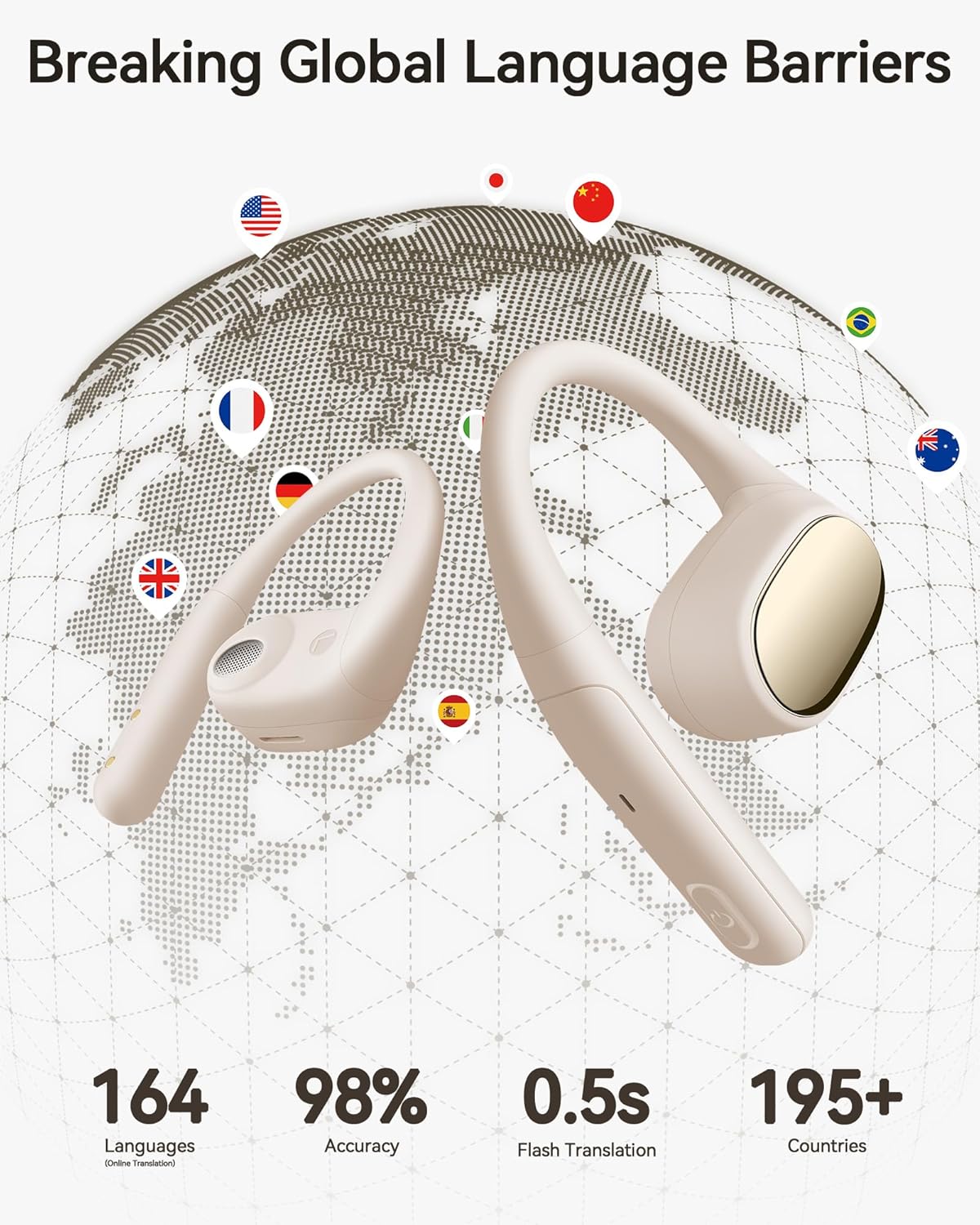 【Real -time translation in 164 languages】 driven by four engines of the leaders, these translator headphones offer online translation in real time in 164 languages with a quick 0.5 second response and up to 98% precision. They offer 7 free features: free conversation, call translation, headphones+telephone mode, translation machine, image translation, voice notes and light music. Perfect to travel, study and businesses, allowing transparent language communication at any time.
