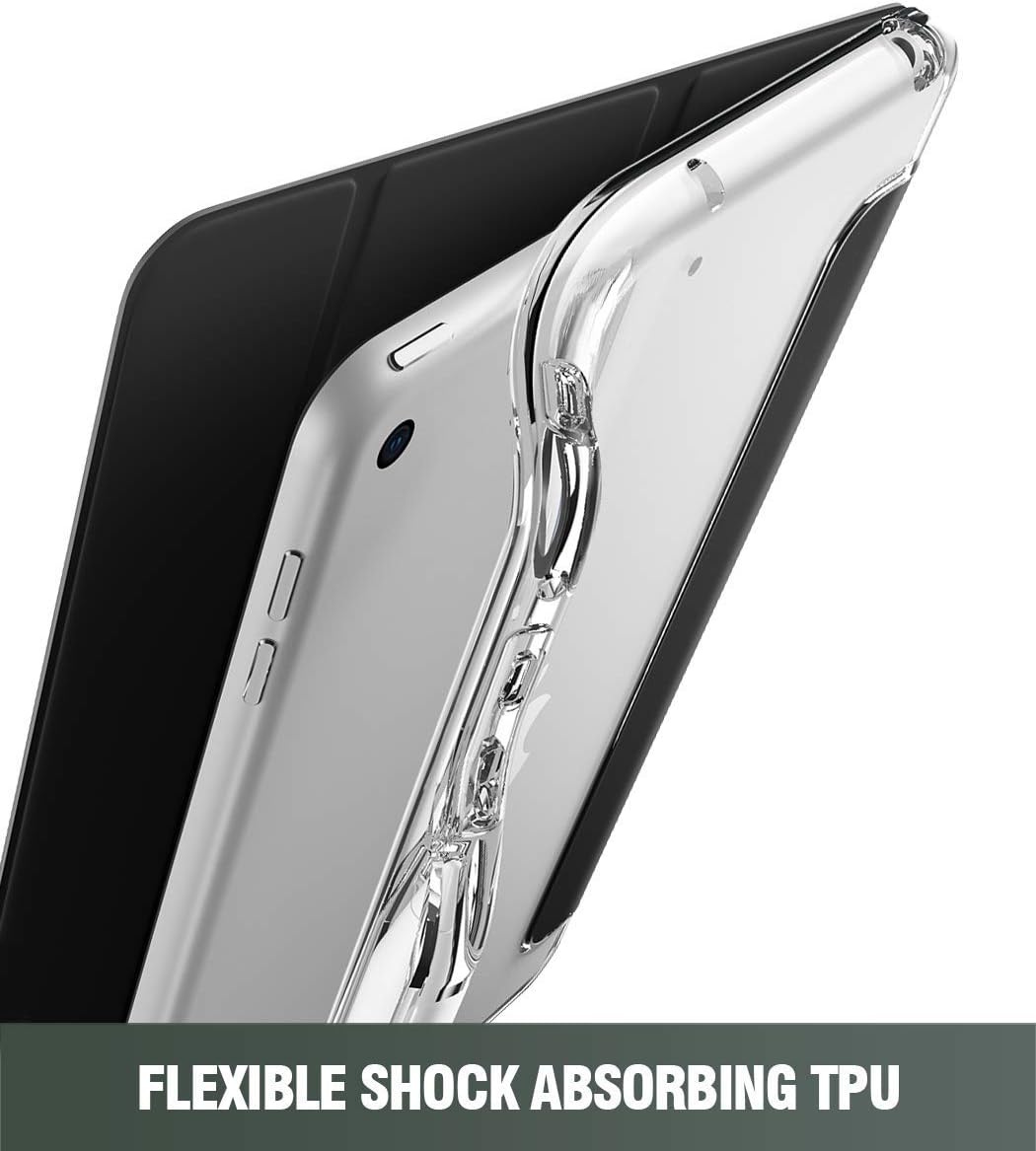 SMART COVER with Trifold Kickstand: Utility style case with trifold cover including auto wake/sleep feature. Unique corner protection with perforated shock absorber design to protect against extreme bumps and impacts.