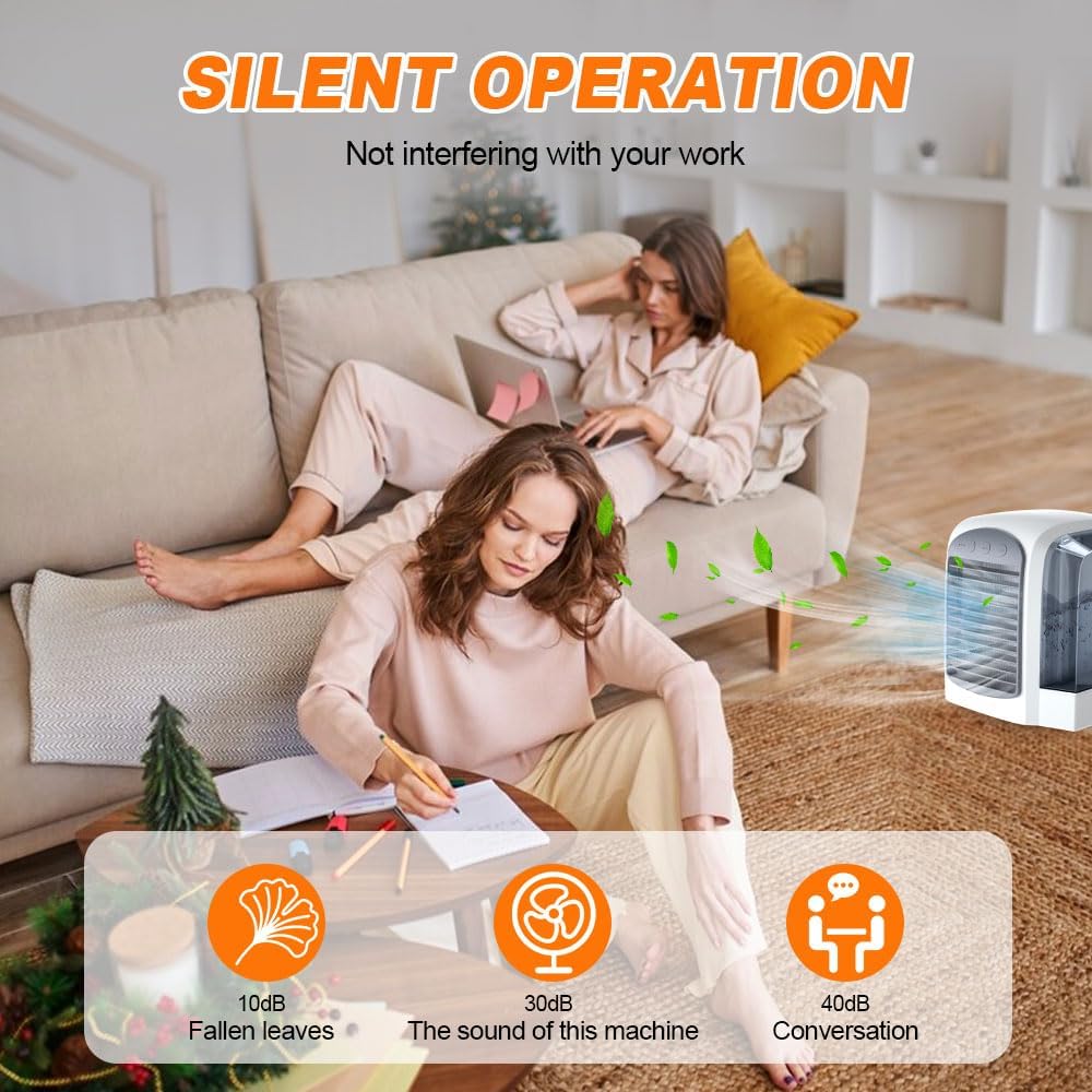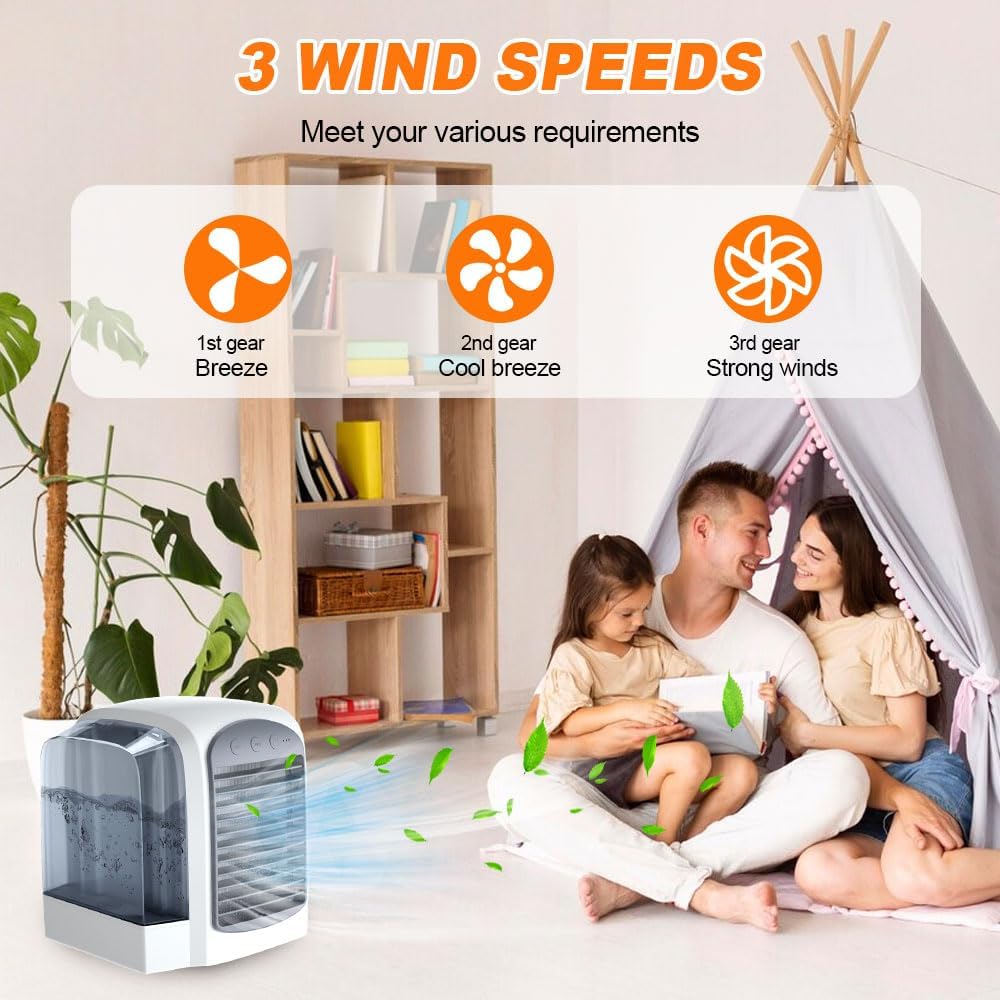 ❄️【Quiet Mini Air Conditioner】With a compact and portable design, this portable air cooler stands out for its ease of transport and storage. Whether at home, in the office or on the go, it offers flexibility and comfort, ensuring freshness anytime, anywhere without annoying noises.