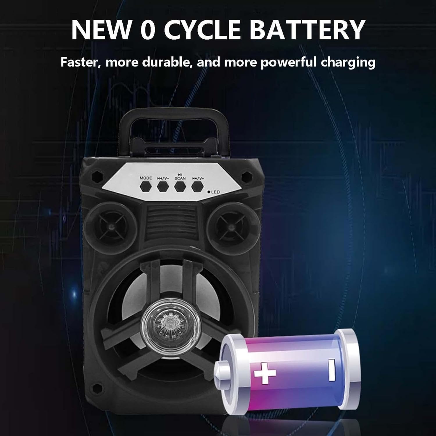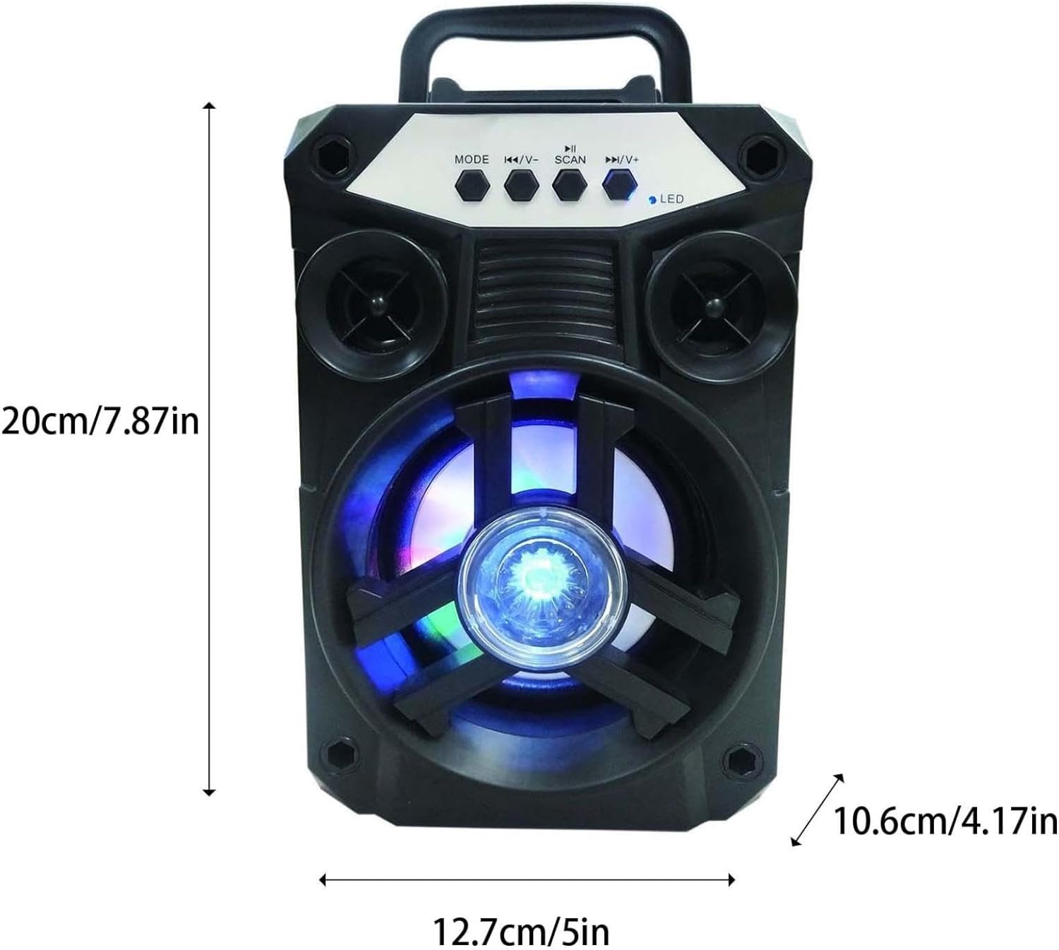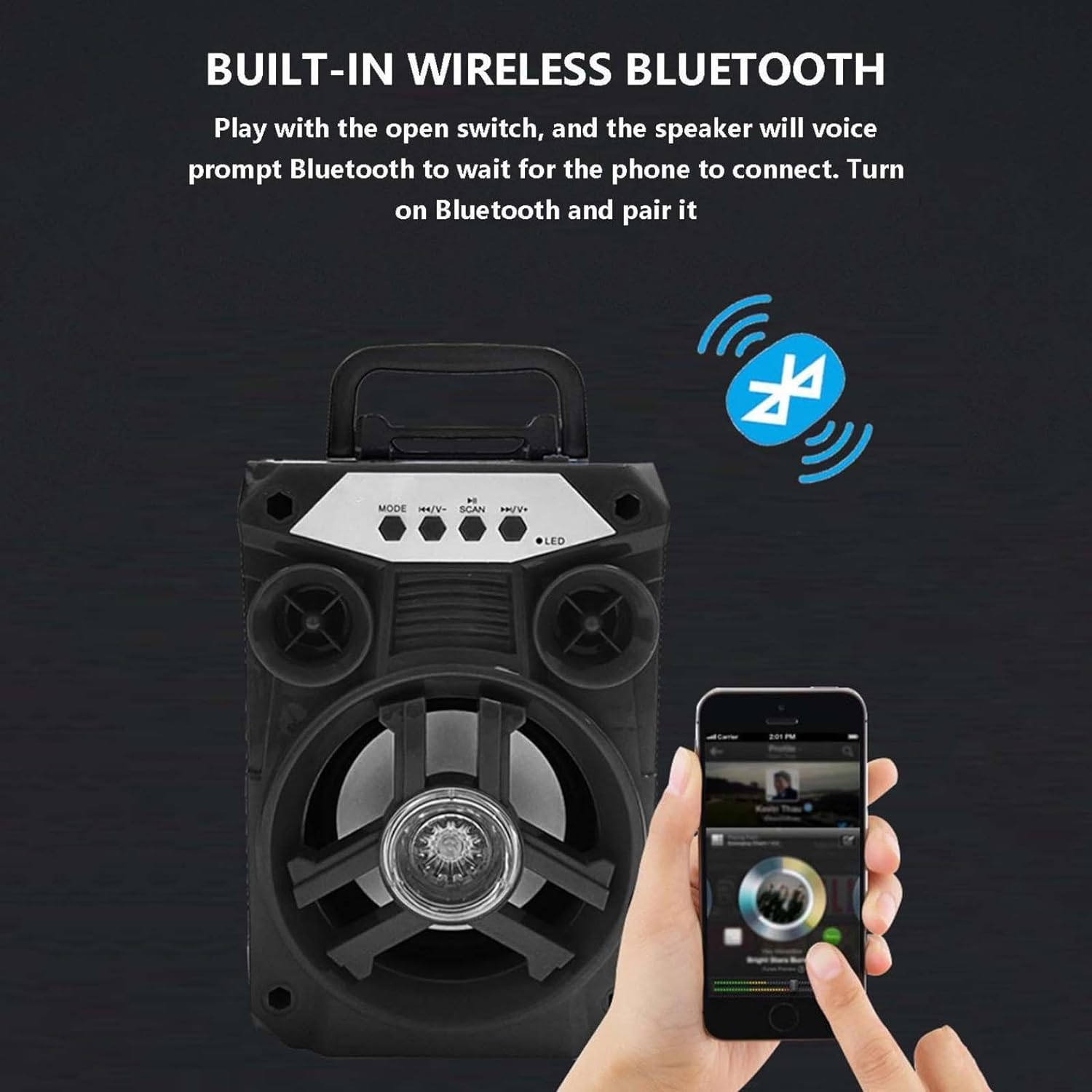 ♫【Portable Bluetooth Speakers】-【Convenient Carrying and Long Playtime】The Bluetooth speaker has a built-in 1200 mAh rechargeable lithium battery, which can play continuously for 4 hours when fully charged (based on 60% volume). You don't need to worry about the speaker not having enough battery when watching a movie at home. The portable speaker is not big or heavy and has a comfortable handle, you can take it anywhere to enjoy music.