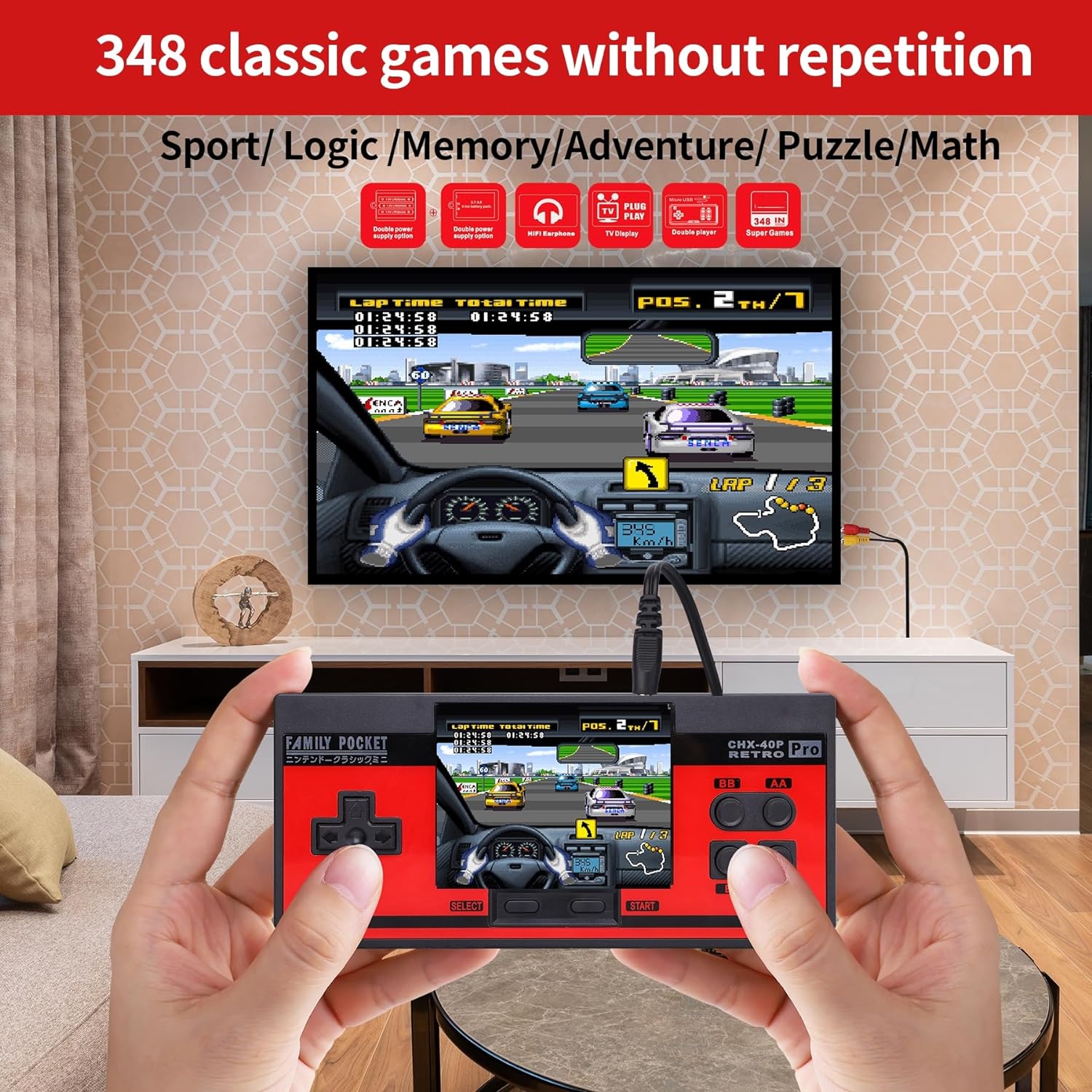 【Fun Puzzle Games】Choose LUHYAUAN to redefine the meaning of game console. It is a portable video game that integrates entertainment, sports, interaction, education and leisure. Built-in 348 new games, including sports, logic, memory, adventure, racing, puzzle, math and non-violence, as well as other types of games. Create a healthy mind and body for children. Children's hand-eye coordination, thinking and problem-solving skills improve when they play.