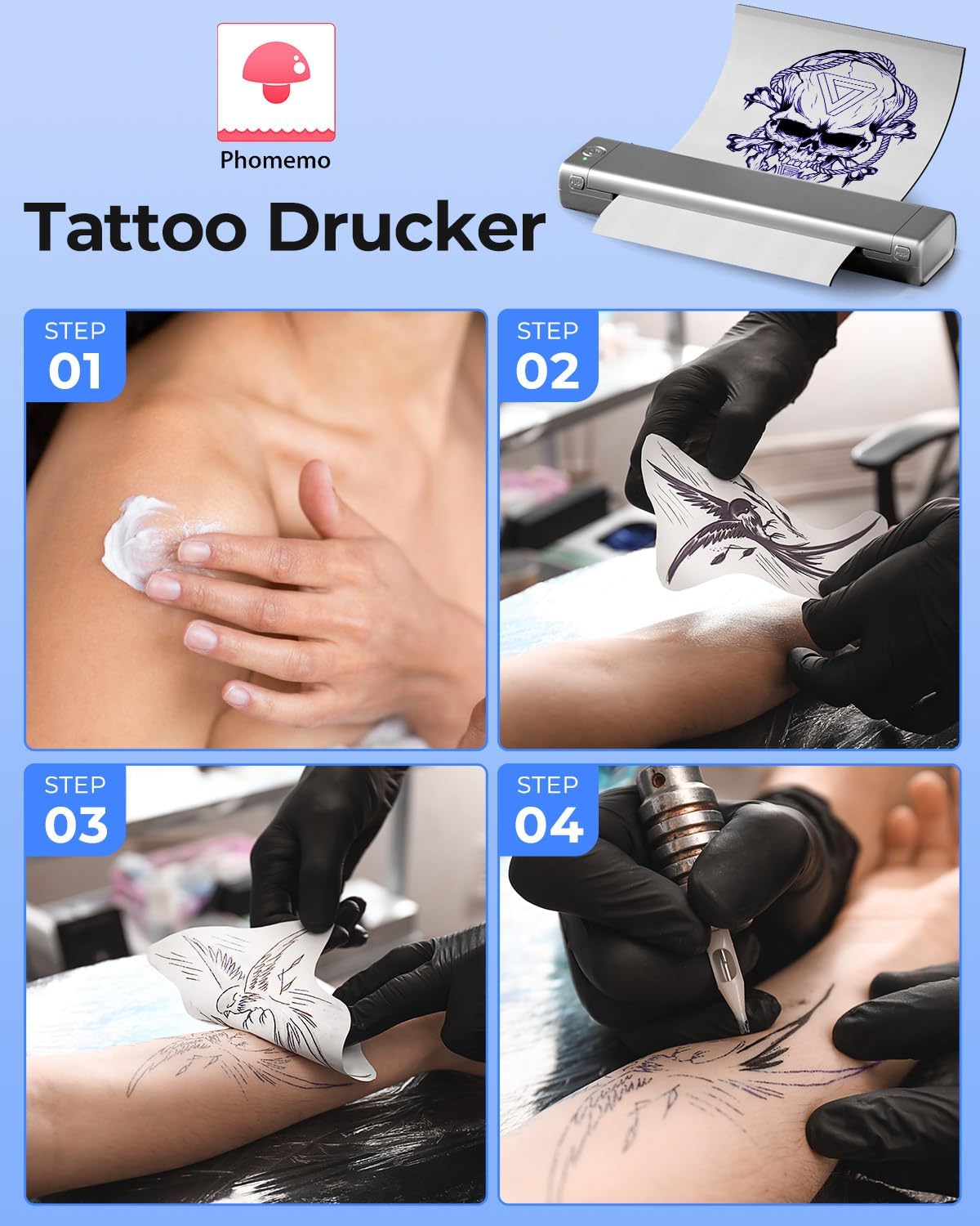 Phomemo M08F Multifunction printer: not only a portable printer but also the last tattoo template printer. The Phomemo Tattoo Stencil printer has a light and wireless design, which weighs only 2 pounds, which is only 60% the size of traditional tattoo transfer machines. With its built -in rechargeable battery, you do not have to worry about being obliged to load cables, providing incomparable comfort and ease of use for professionals and tattoo artists on the fly