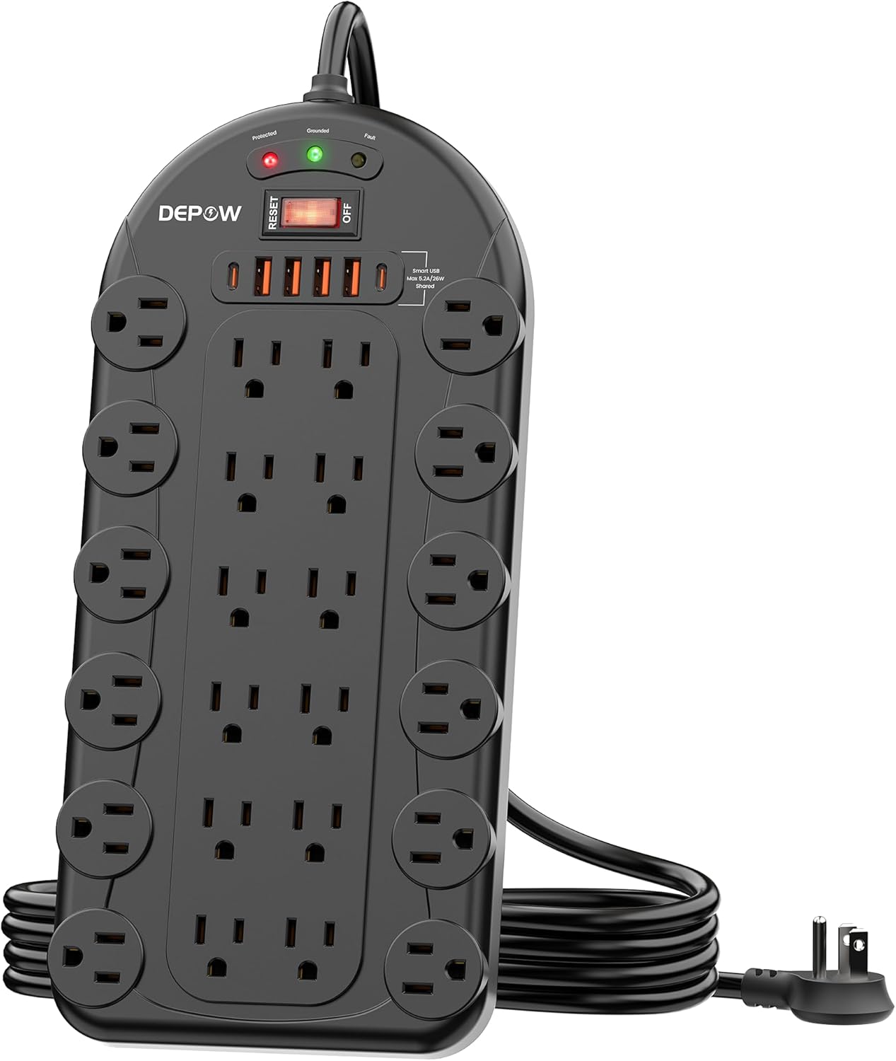 【Strong & Versatile】With its sleek black design and flat plug, this power strip blends seamlessly into any environment. Whether you need a reliable power strip for gaming, a large surge protector for your office, or a versatile wall-mountable power strip for your home, the DEPOW power strip surge protector has you covered.