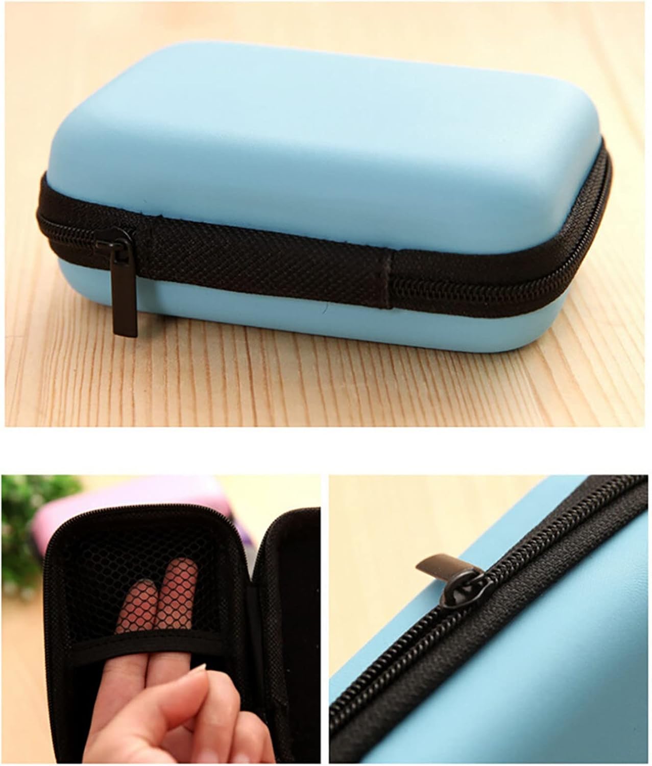 Mini hard leather zipper bag for storing headphones