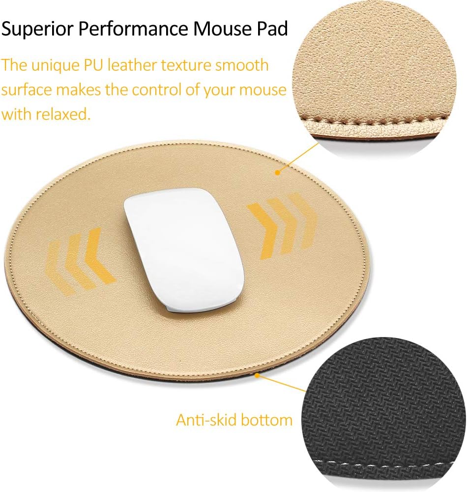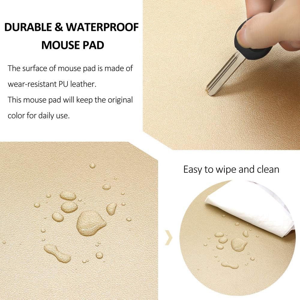 PREMIUM MATERIAL: The working side is made of PU leather material; This mouse pad is durable, waterproof and wear-resistant. The elegant and unique aesthetic appearance of the mouse pad will be an eye-catcher on your desk. The bottom is a non-slip rubber base.