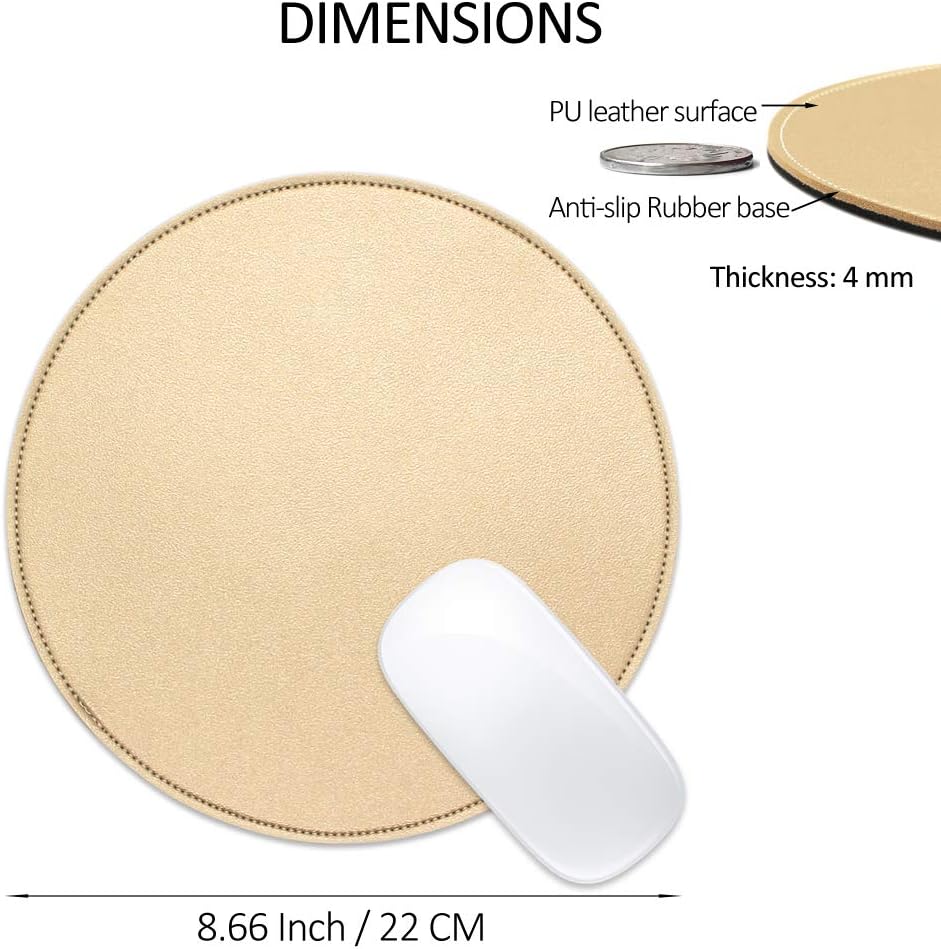 DIAMETER: 8.66 inches/220 mm. Mouse pad with noise reduction function for home, office, business, school and gaming. It is compatible with all mice (wired mouse and wireless Bluetooth mouse).