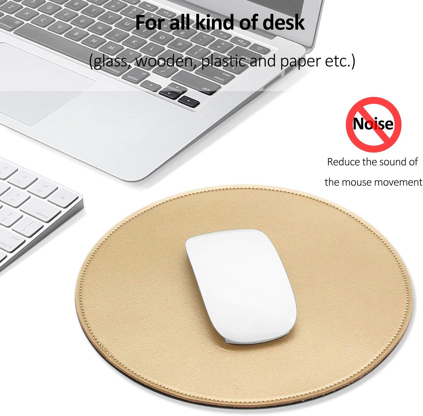 STRUCTURE: The PU pad and rubber base are sewn with a durable line. The sewing line is beautiful and neat. This mouse pad can be used on all types of desktop (glass, wood, plastic and paper, etc.)