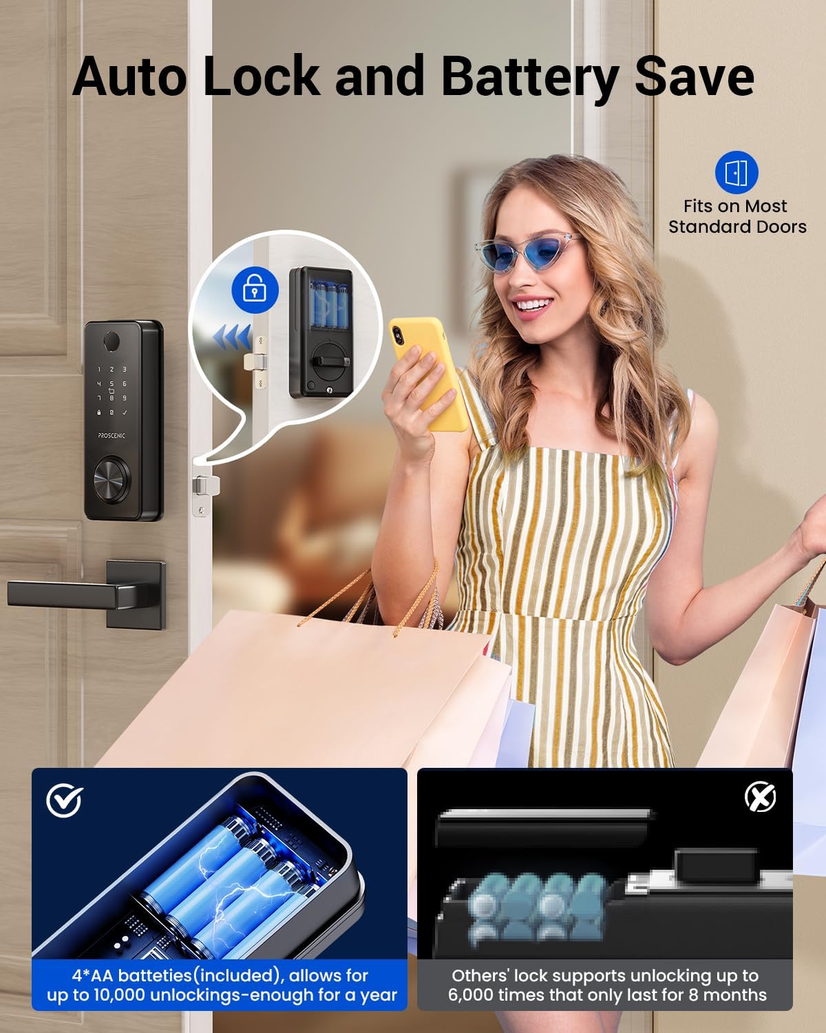 ➤ Includes 4 AA batteries that power more than 100,000 unlocks, enough for a year of daily use. Automatically sends an alert when the battery is low. Connect to a portable charger using a Type-C cable for emergency access