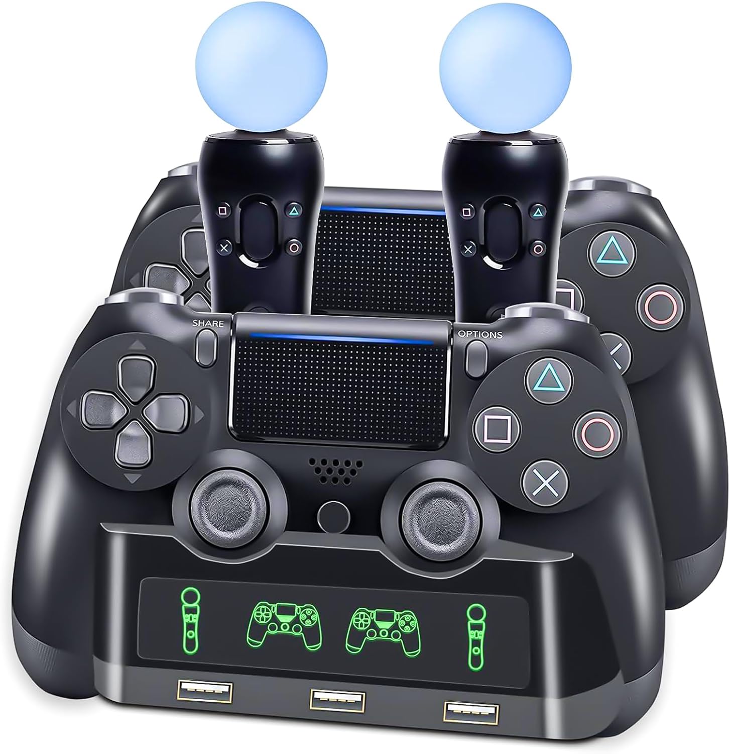 PS4 Controller Charging Station, 4 in 1 PS Motion Move Charging Station…