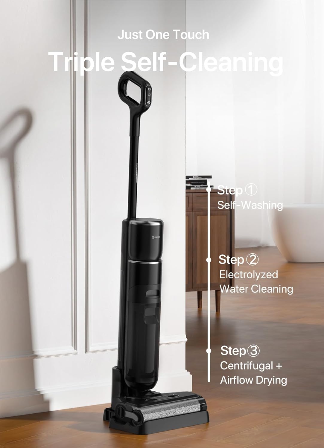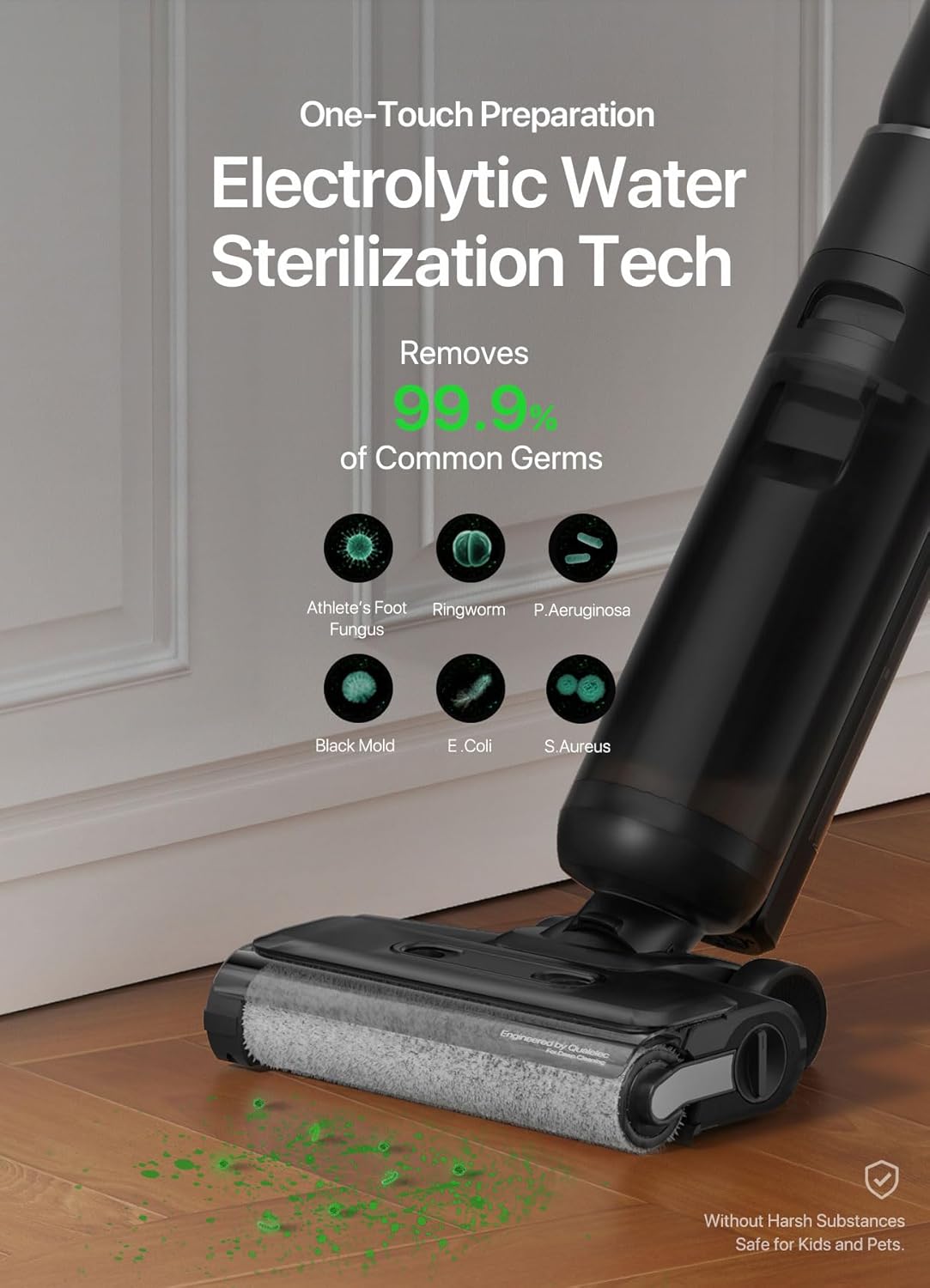[Electrolytic Water Technology] Electrolysis produces electrolyzed water that cleans floors of common dirt and eliminates odors naturally for a deeper clean without the need for cleaning products. Safe for pets and children.