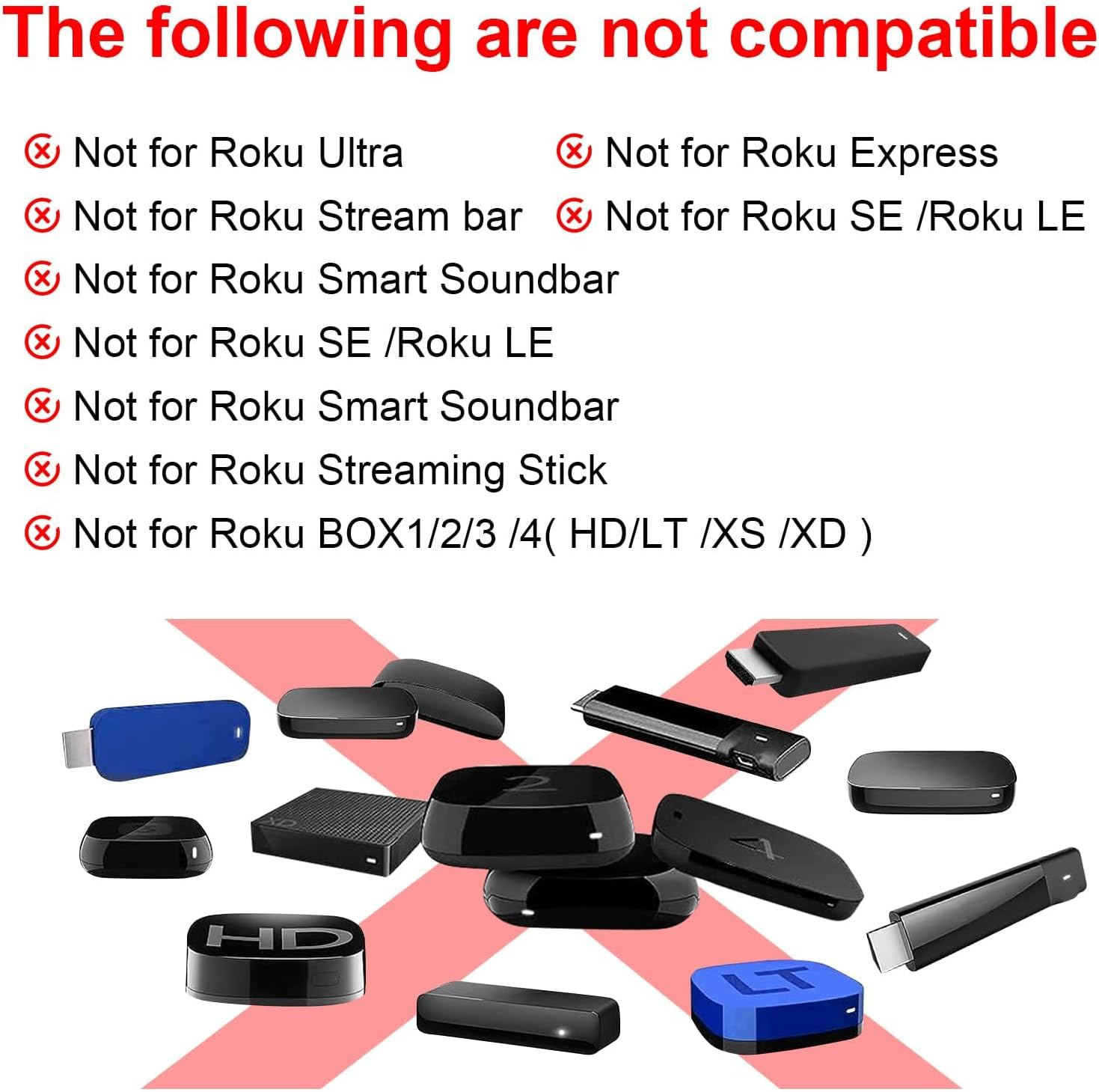 Not applicable: replacement for remote control Philips Roku TV is not compatible with Roku Stick, Roku Streaming Stick, Roku Box 1/2/3/4 (HD/LT/XS/XD), Roku Ultra, Roku Express, Roku Express 4k+, Roku Premiere or Roku Player. [NO voice function, NO headphone jack]