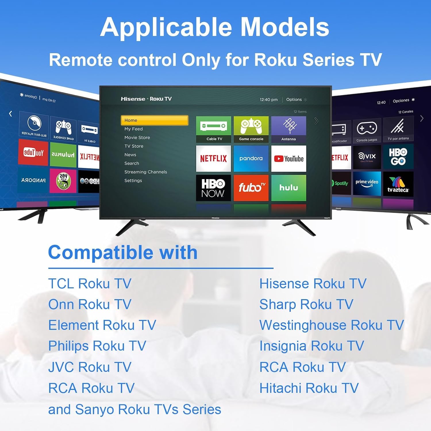 Applicable models: Remote control Only for Roku TV, compatible with TCl Roku TV, Hiengo Roku TV, Onn Roku TV, Sharp Roku TV, Element Roku TV, Westinghouse Roku TV, Philips Roku TV, Insignia Roku TV, JVC ROKU, RCA ROKU TV TV, HETAACH ROK and Sanyo TVS.