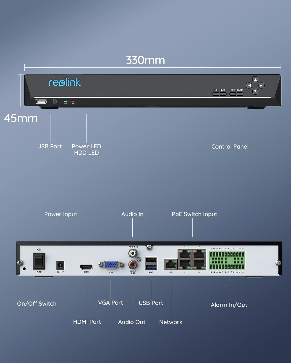 Complete integration with Smart Reolink Cams: The RLN36 NVR can integrate human detection and reproduction/of Reolink IP Cams vehicles to build an intelligent system. By adding more reolink cameras with optical zoom, automatic monitoring, bidirectional talks, foci characteristics activated by the movement, you can even build a vanguard domestic security system on your own.