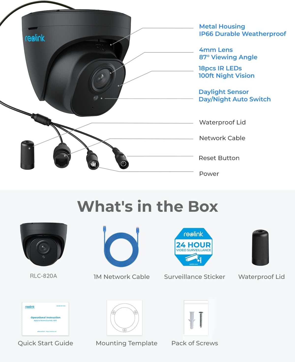 Easy Poe: Thanks to Power Over Ethernet (POE) technology, this outdoor camera can transmit videos and obtain energy simultaneously through a single network cable. Easy Plug-And-Play for a reliable connection.