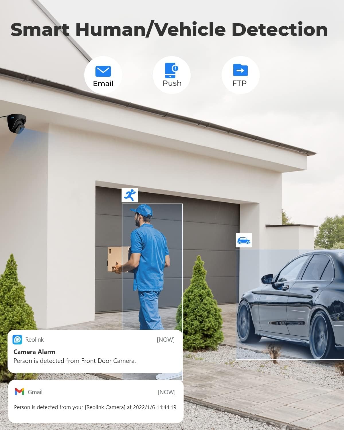 Human/vehicle detection: This IP camera is equipped with detection technology in the device to identify humans and vehicles of other objects. With its accurate detection, you can monitor true threats and release your mind from unnecessary alerts.