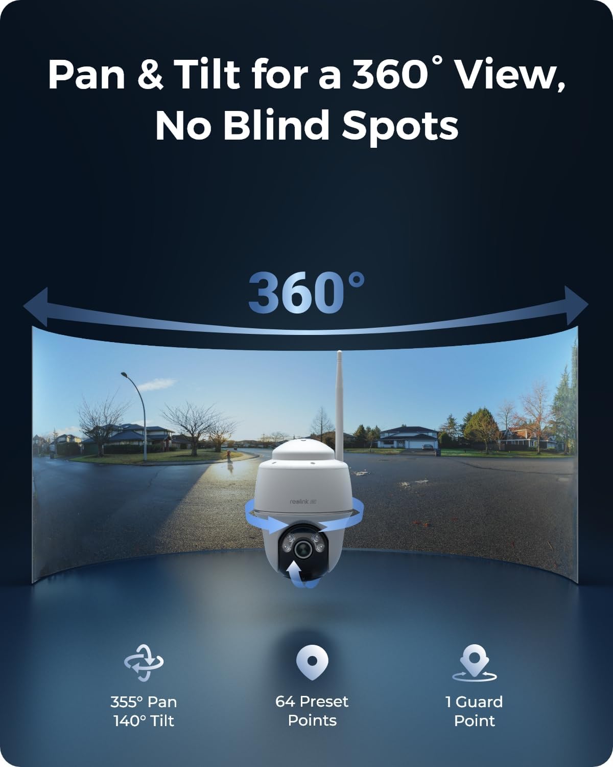360 ° coverage coverage and coverage point: with a 355 ° pan and an inclination of 140 °, this wireless outdoor chamber ensures that there are no blind points in the surveillance of its property. Establish a monitor point designated in the application, and the camera will return automatically after the deviation, providing constant coverage for the security perimeter of your home.