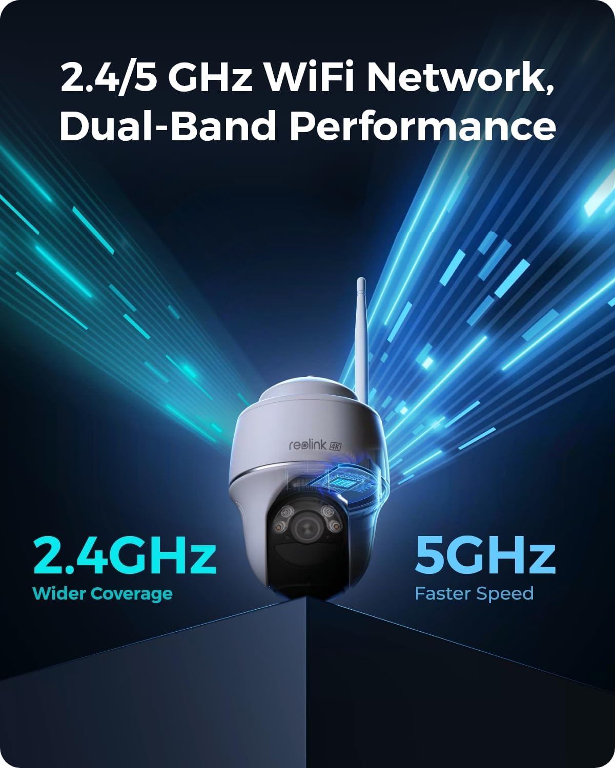 Sin Cable E Wi-Fi Installation: This wireless camera system allows fast and easy configuration without wiring discomfort. With 2.4GHZ for an extended and 5GHz range for faster speeds, the system guarantees a strong and stable connection for home security cameras, both indoors and outdoors, regardless of the design of your home.