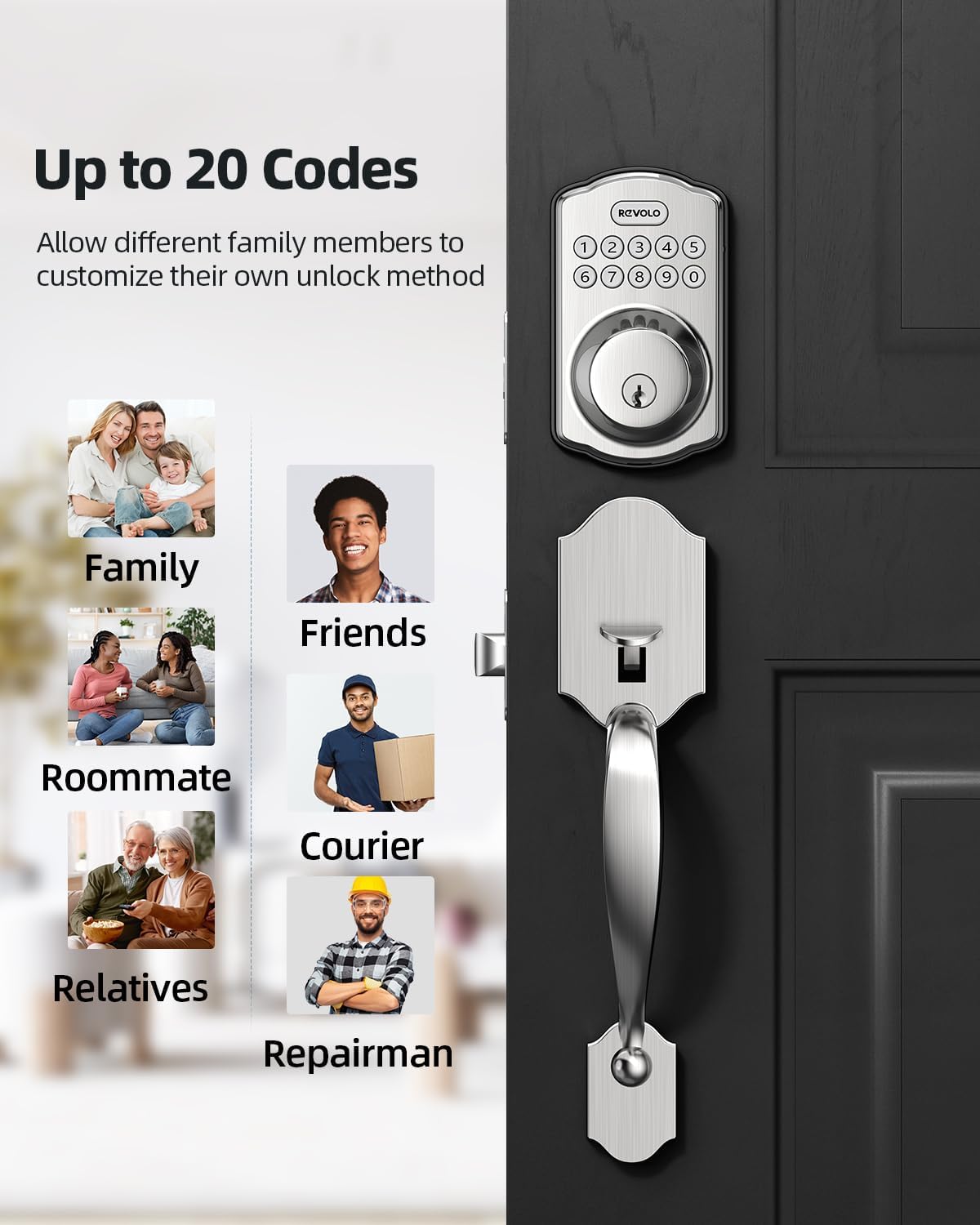 Key input: This Deadbolt keyboard provides 20 access codes for family members and a temporary code for unique guests. This is the best solution for holiday rentals or family houses