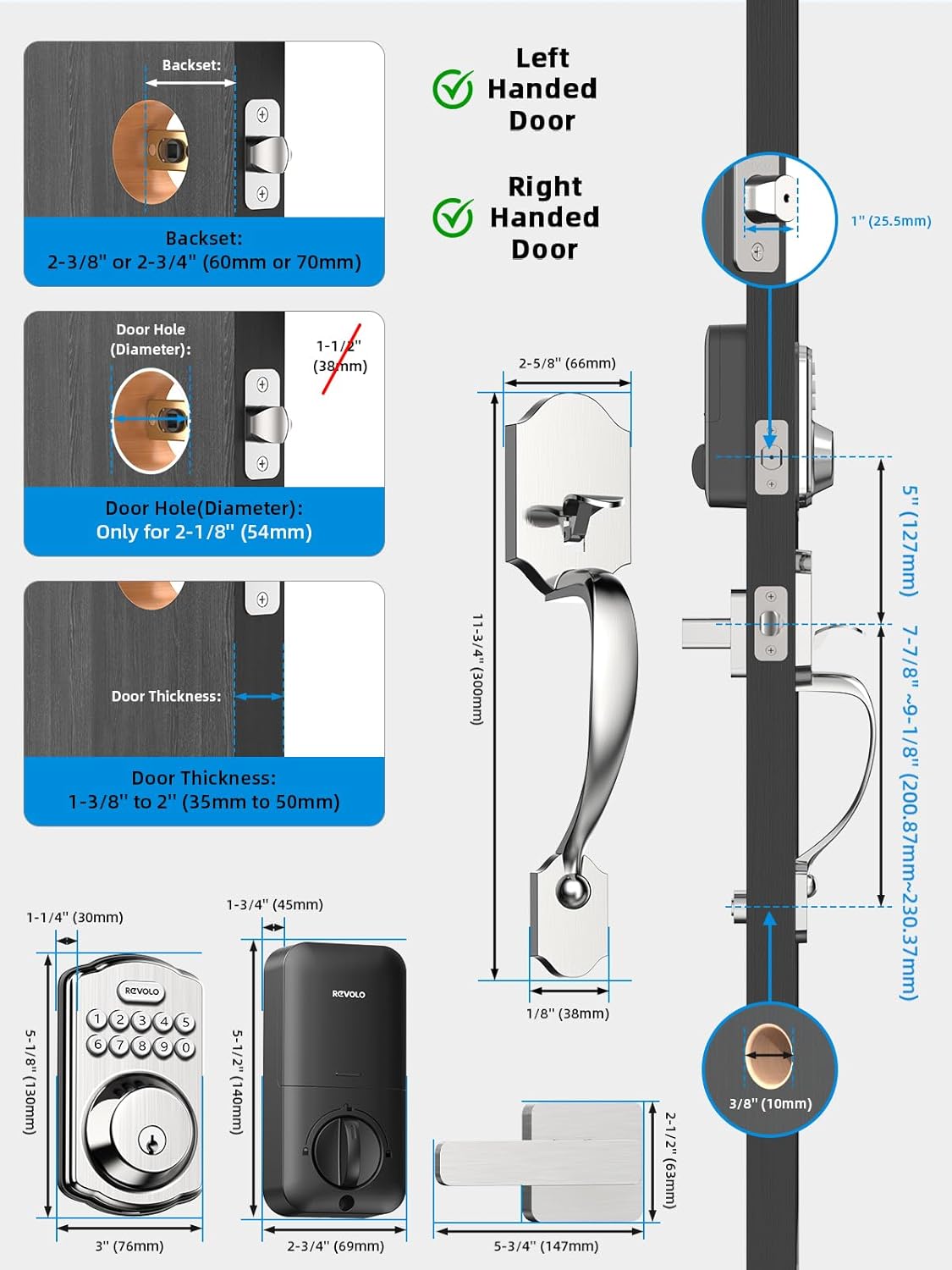 Easy installation: The locking game of the front door of Hasolo comes with an adjustable latch to adapt to most standard door preparations, including the necessary hardware components. You can easily install it with just a Phillips head screwdriver