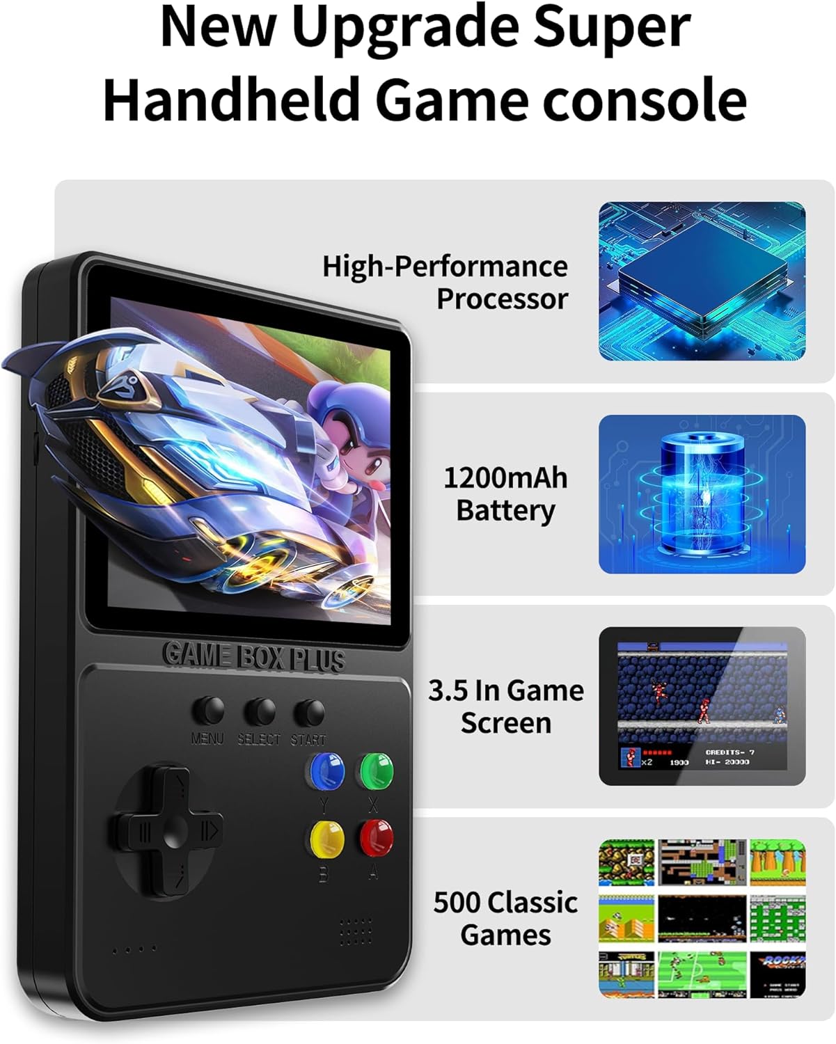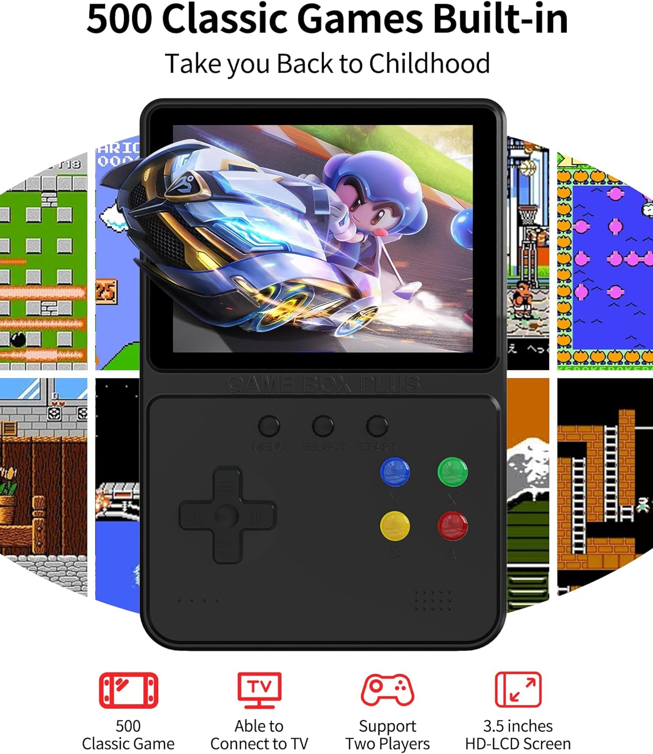 🎮🕹️🎉 Relive your childhood classics 🎮🕹️🎉: Our retro handheld game console features a whopping 500 classic games, including beloved titles like Pac-Man, Contra, MapleStory, Jackie Chan and Ninja Dragon. Share the nostalgic joy of playing with these timeless jewels with your children and create new and cherished memories together!