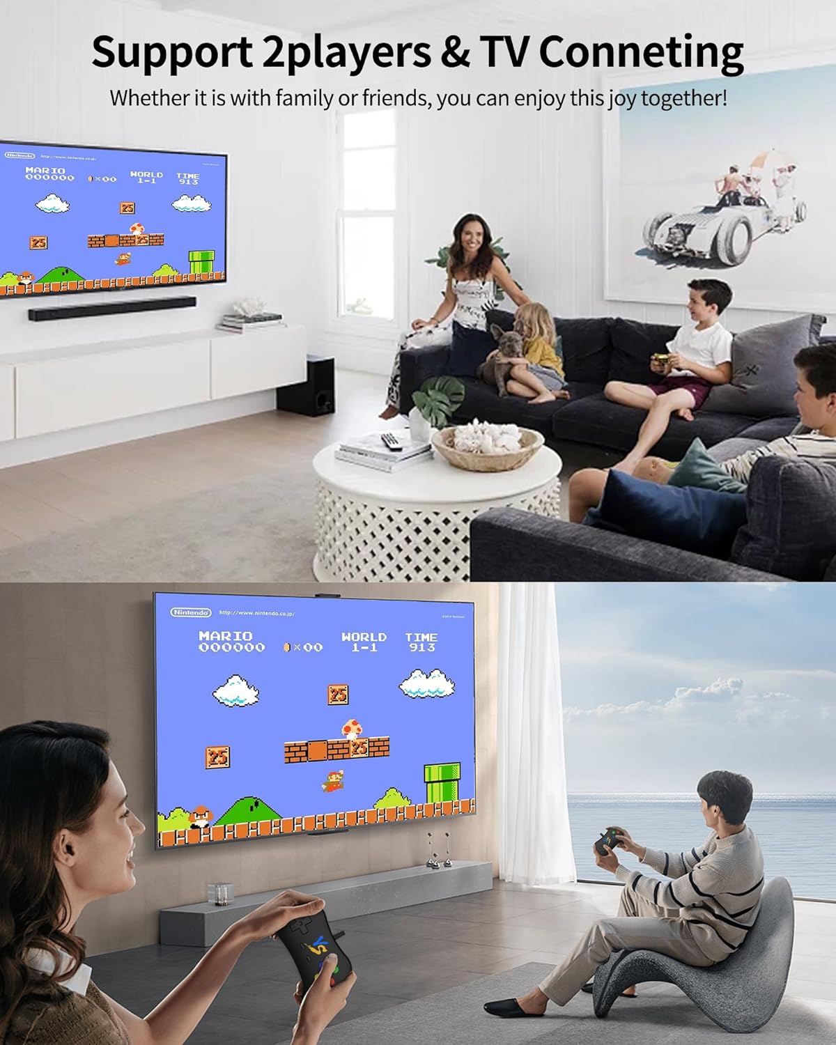 🎮🕹️👨👩👧👦 Fun for the whole family 🎮🕹️👨👩👧👦: Our game console comes with a two-player game controller, allowing for two-player adventures. Connect to your TV via the AV output for a larger screen and superior audio, making family game nights a blast!