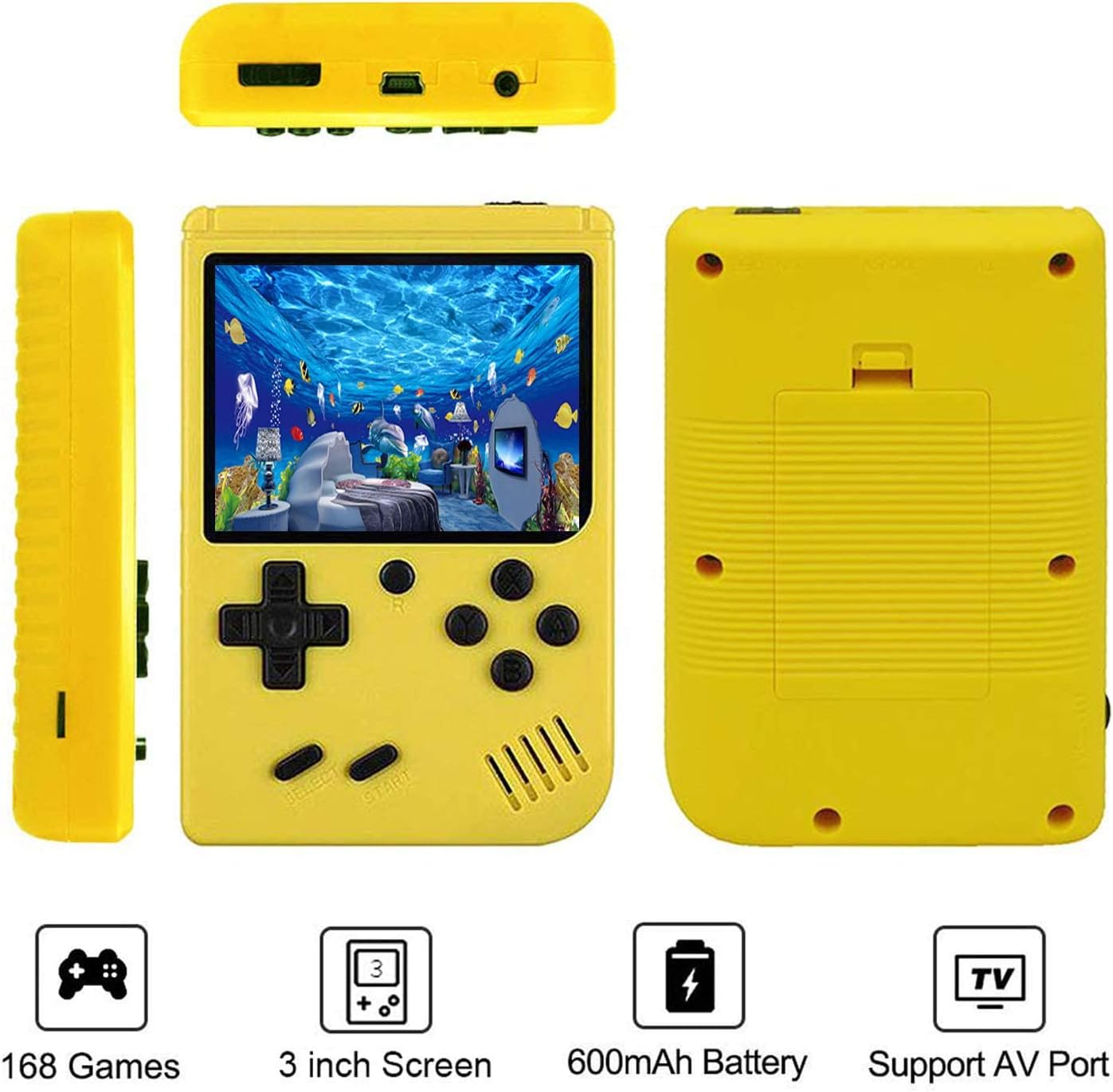8 Bit Handheld Games Built-in 168 FC retro classic games, let kids spend happy hours with old school classic games.