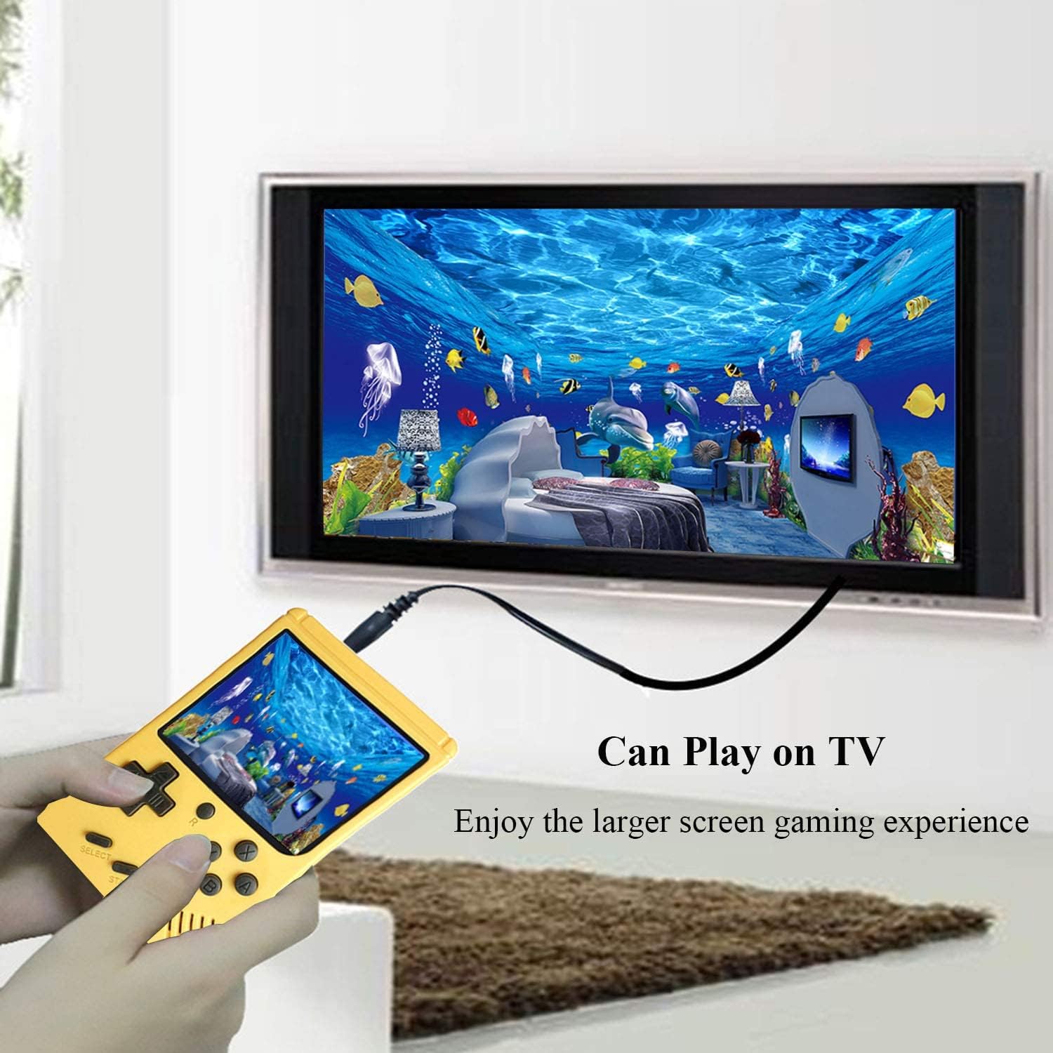 Easy to connect the game console with TV (AV connector cable is included), enjoy the bigger screen gaming experience.