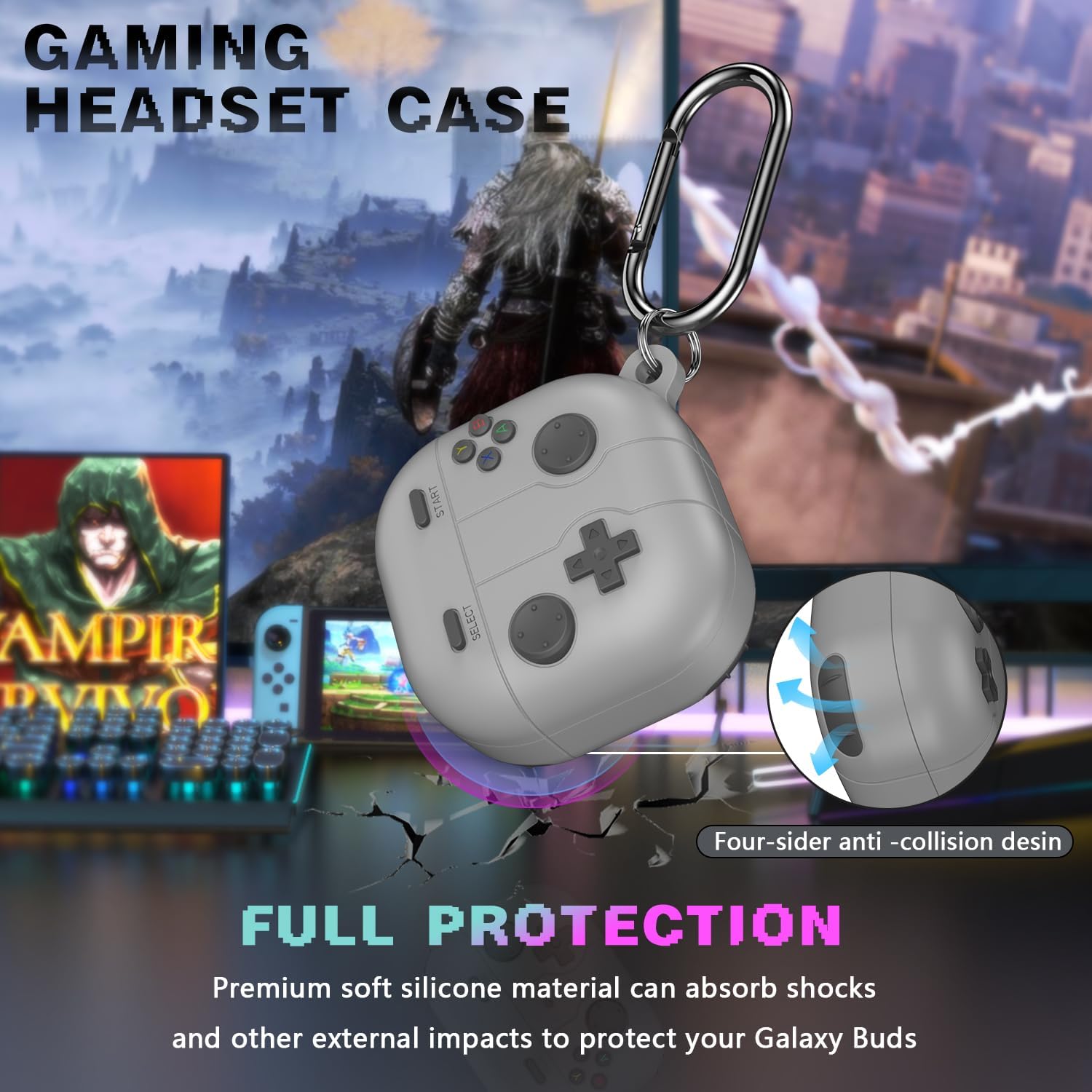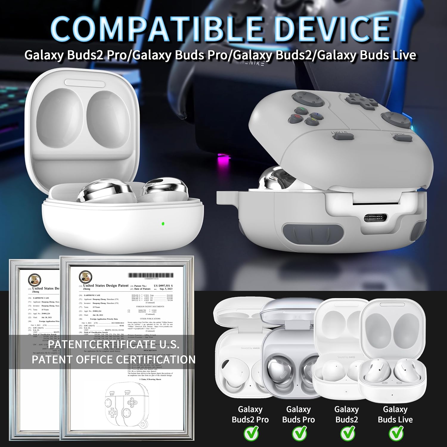 ✔【Compatible Models】: Game console themed safety case designed for Galaxy Buds FE (2023), Galaxy Buds 2 Pro (2022), Galaxy Buds Pro (2021), Galaxy Buds 2 (2021) and Galaxy Buds Live (2020).