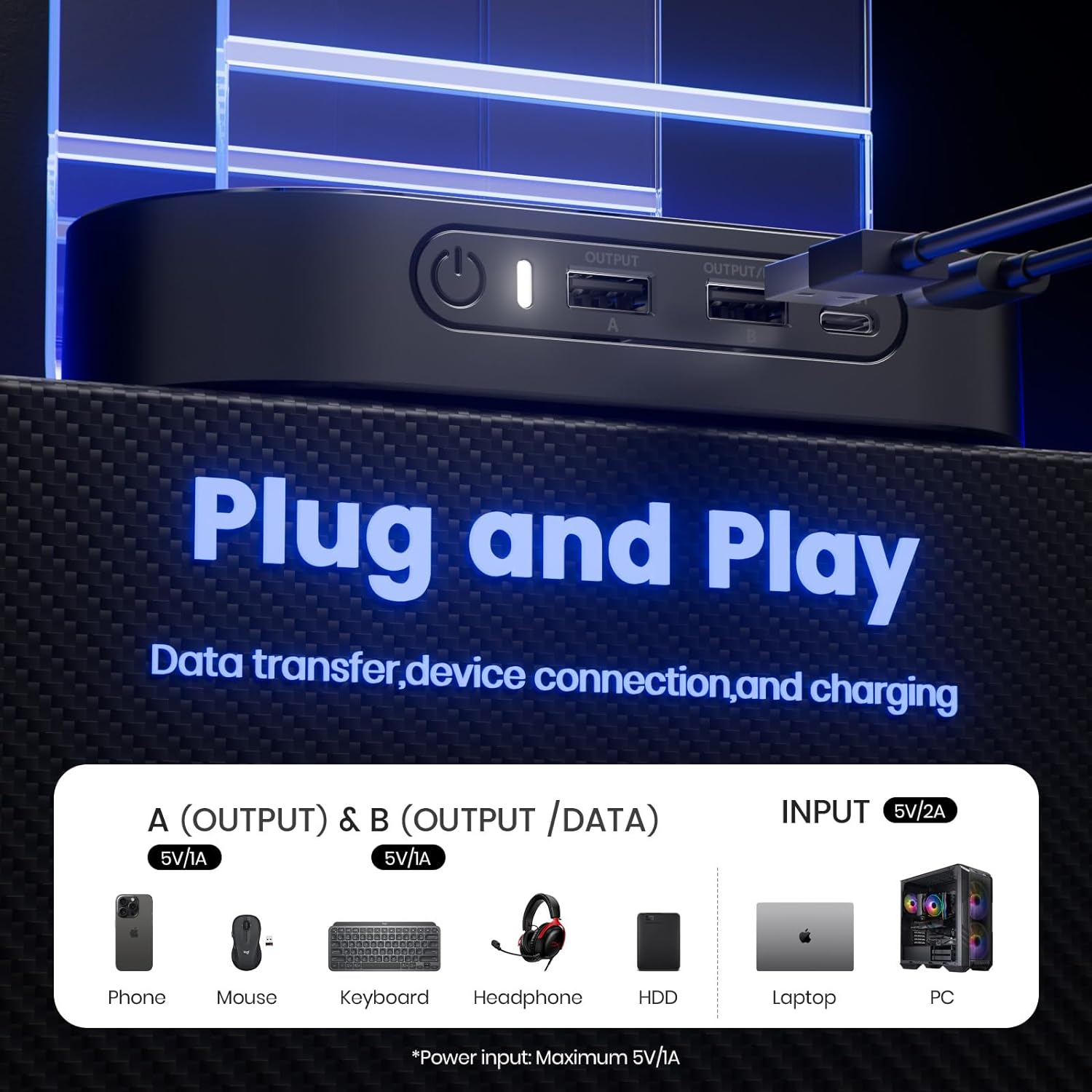 【Convenient 3 USB ports】: RGB headphone support for desktop has USB ports that support data transmission and power supply. You can also load low voltage devices such as headphones. Plug and Play, offers easy access to its USB devices.