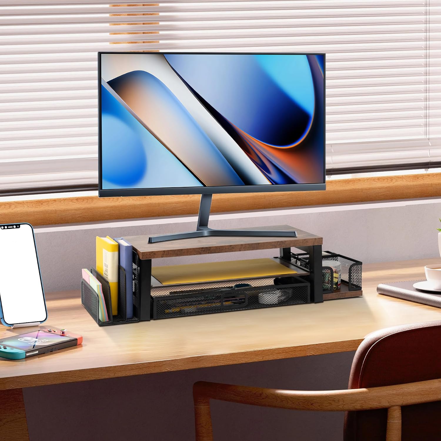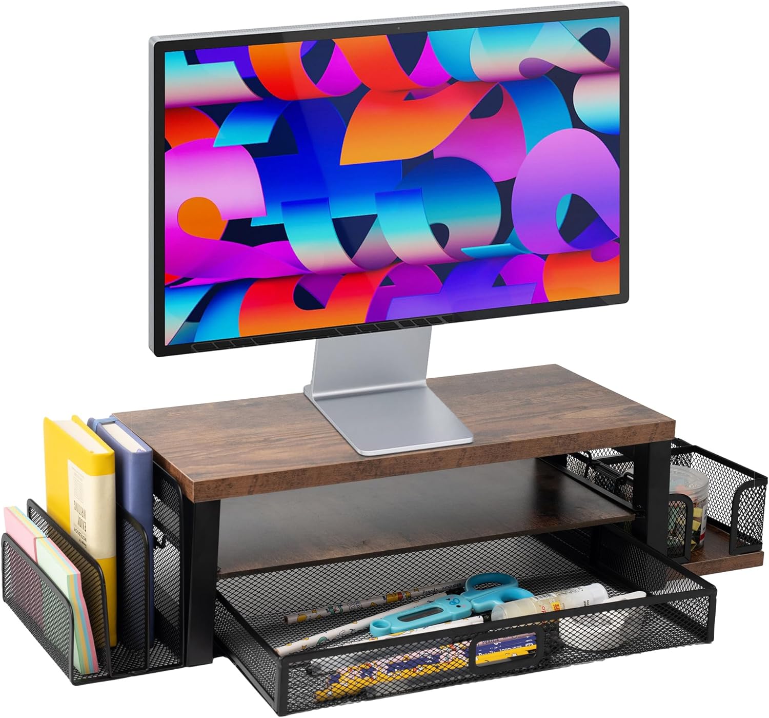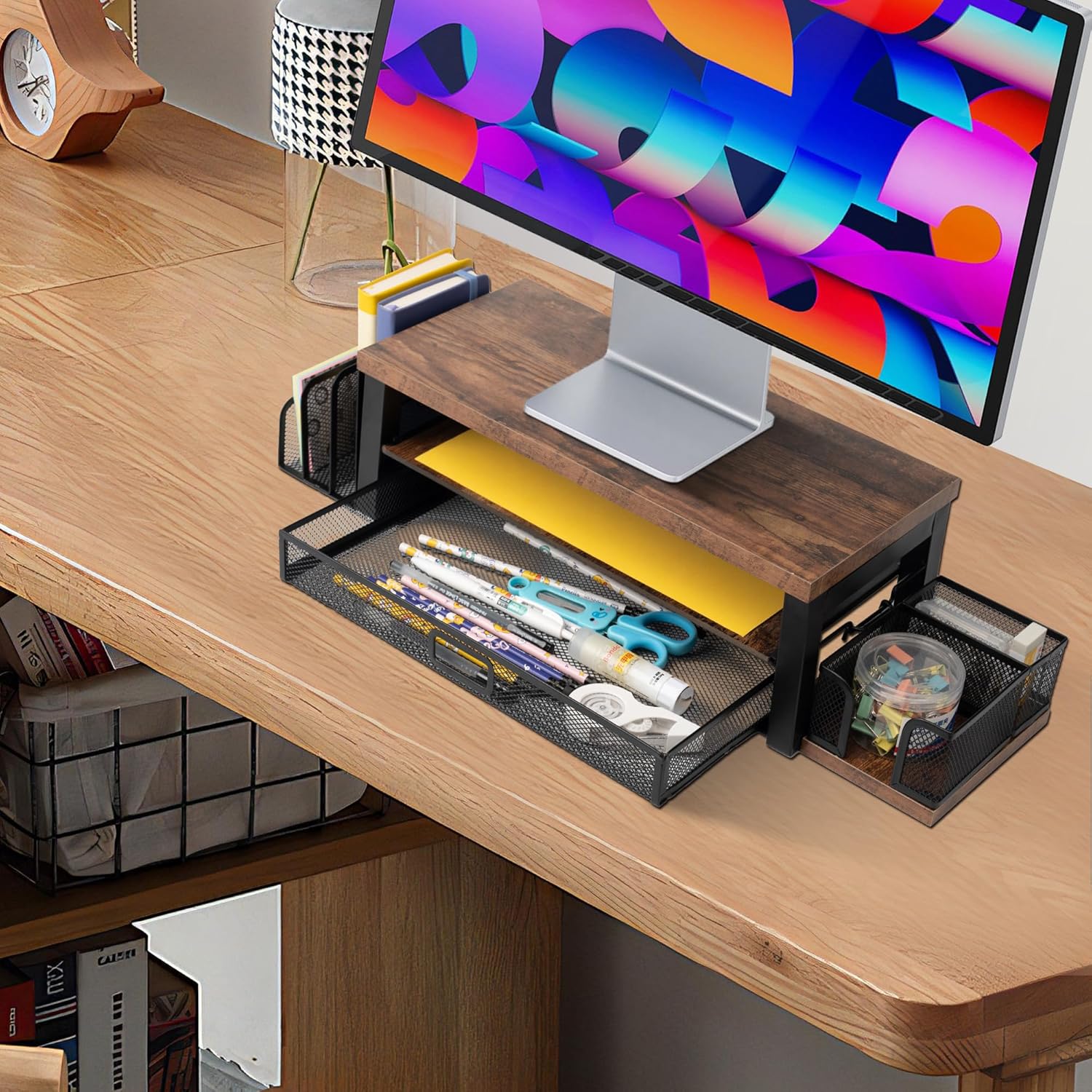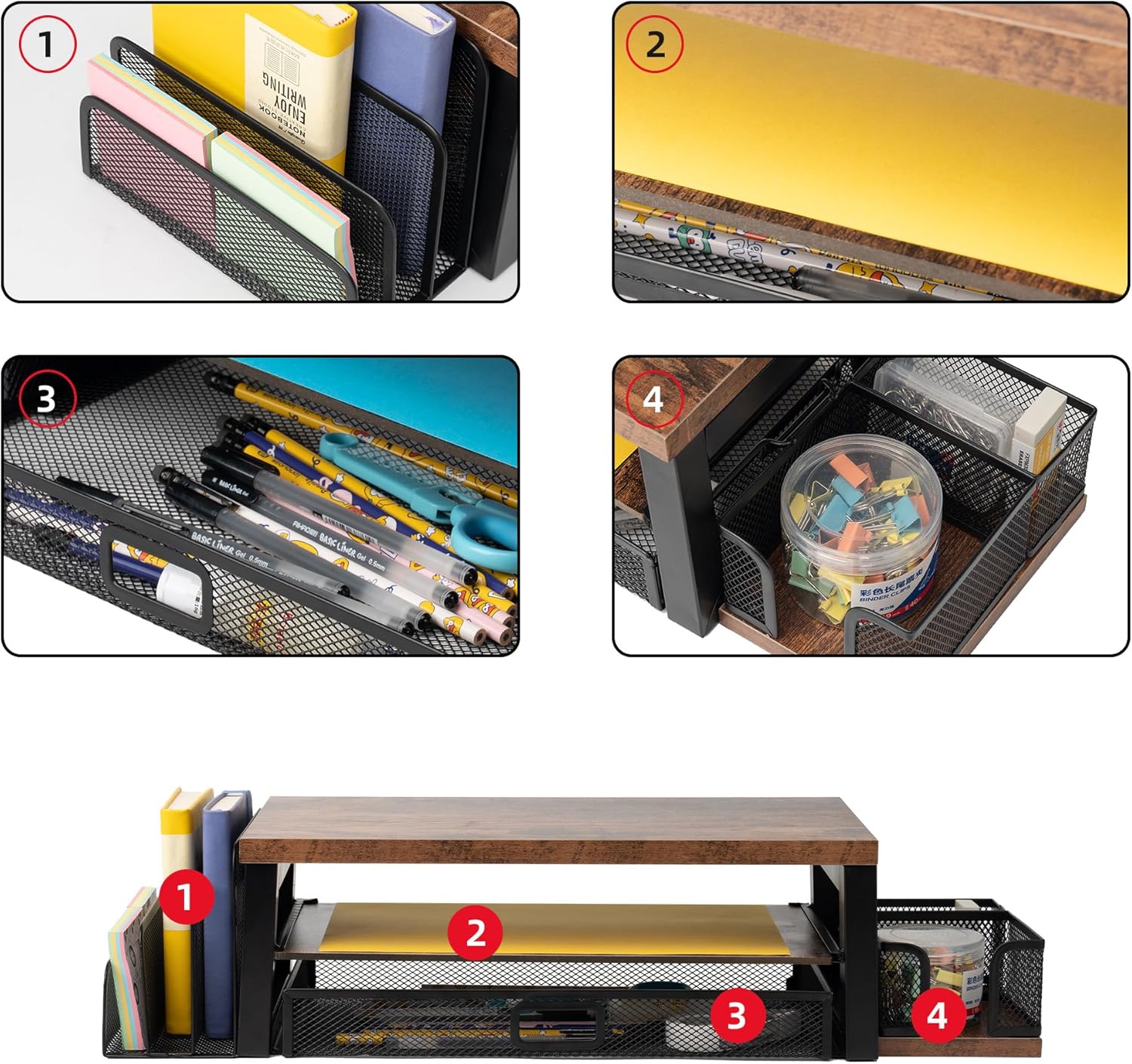 【Space savings design】 -The 2 -level 2 -level monitor wooden desktop organizer and mail organizer offers a wide storage space for all the supplies and accessories of your office, keeping your desk free of disorder.