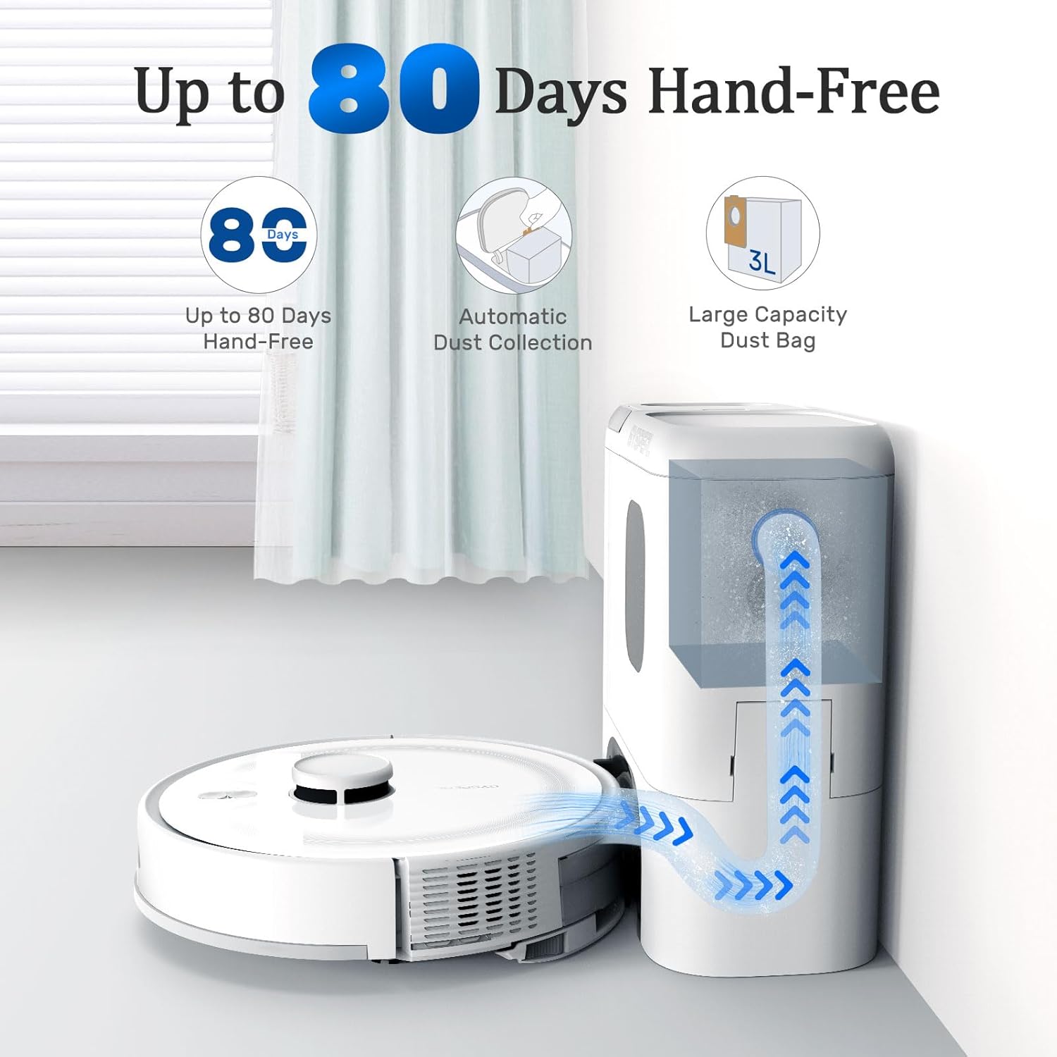 【Clean Home for 80 Days】The extra large capacity dust container can hold up to 80 days of dirt, completely freeing your hands. The dust bag is sealed with a tear-resistant design to ensure that no garbage or odors escape, giving you a clean and fresh home.