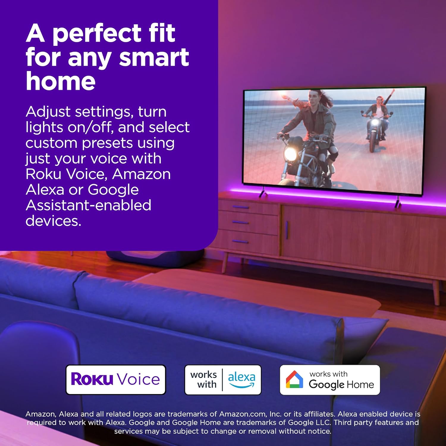 Simply say the word: combine your light strips with Roku Voice, Alexa or a device enabled for the Google assistant to turn on and off the lights, adjust the brightness and more.