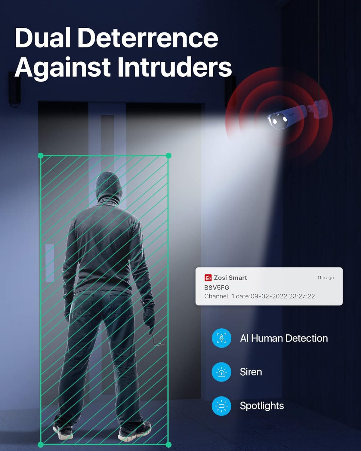 【Detection of intelligent people and vehicles and alerts】 The camera accurately detects people and vehicles, being intelligent enough to distinguish them from other objects, thus reducing unwanted notifications safely. You will receive Push notifications of instant applications, email alerts and sound alarms (siren) when movement events are detected.