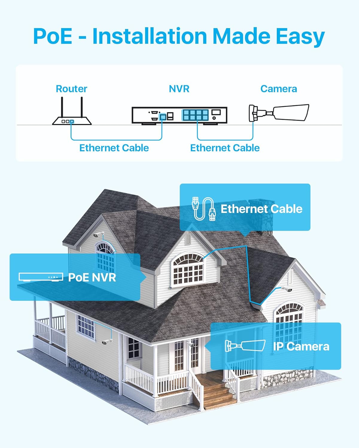This NVR 4K 8 ports can be updated to 16CH expanded with a connected Poe switch (not included).