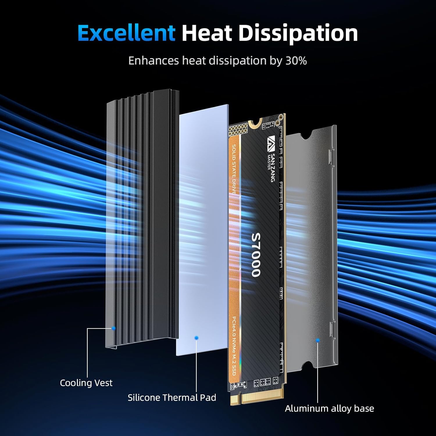 【Quality Assurance and Support】SANZANG S7000 SSD undergoes strict quality testing to ensure that every detail meets high standards. Each SSD comes with a 5-year warranty and lifetime technical support, giving you peace of mind during use. (1 GB = 1 billion bytes, 1 TB = 1 trillion bytes. Actual user capacity may be less depending on operating environment.)