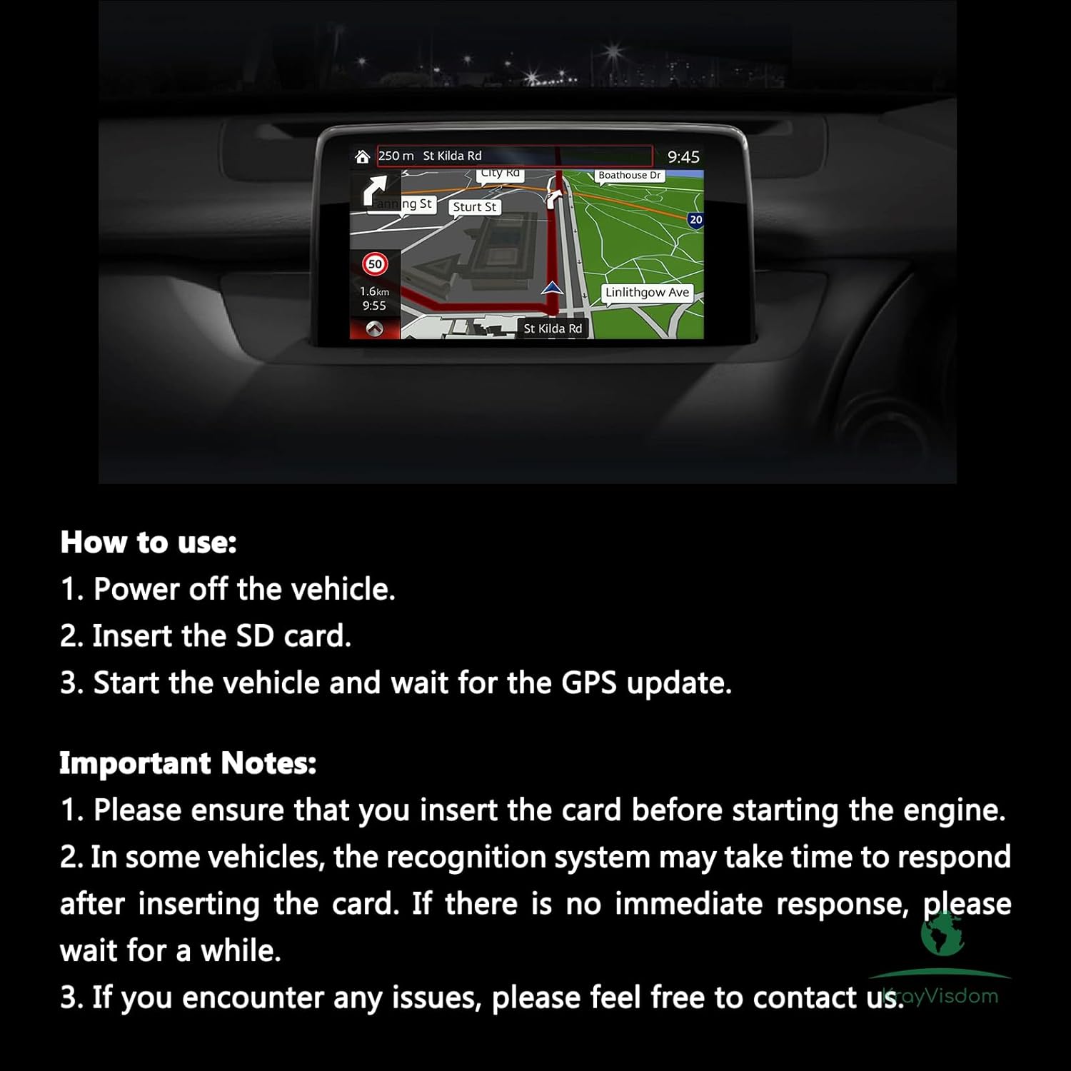 【Easy Plug-And-Play Installation】: Simplicity at its expression, this Navigation SD card does not require complex configuration. Simply insert your vehicle's navigation system and be ready to start. (** Be sure to insert the card before lighting the engine).