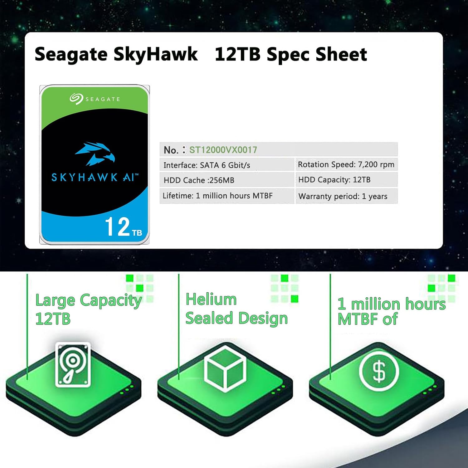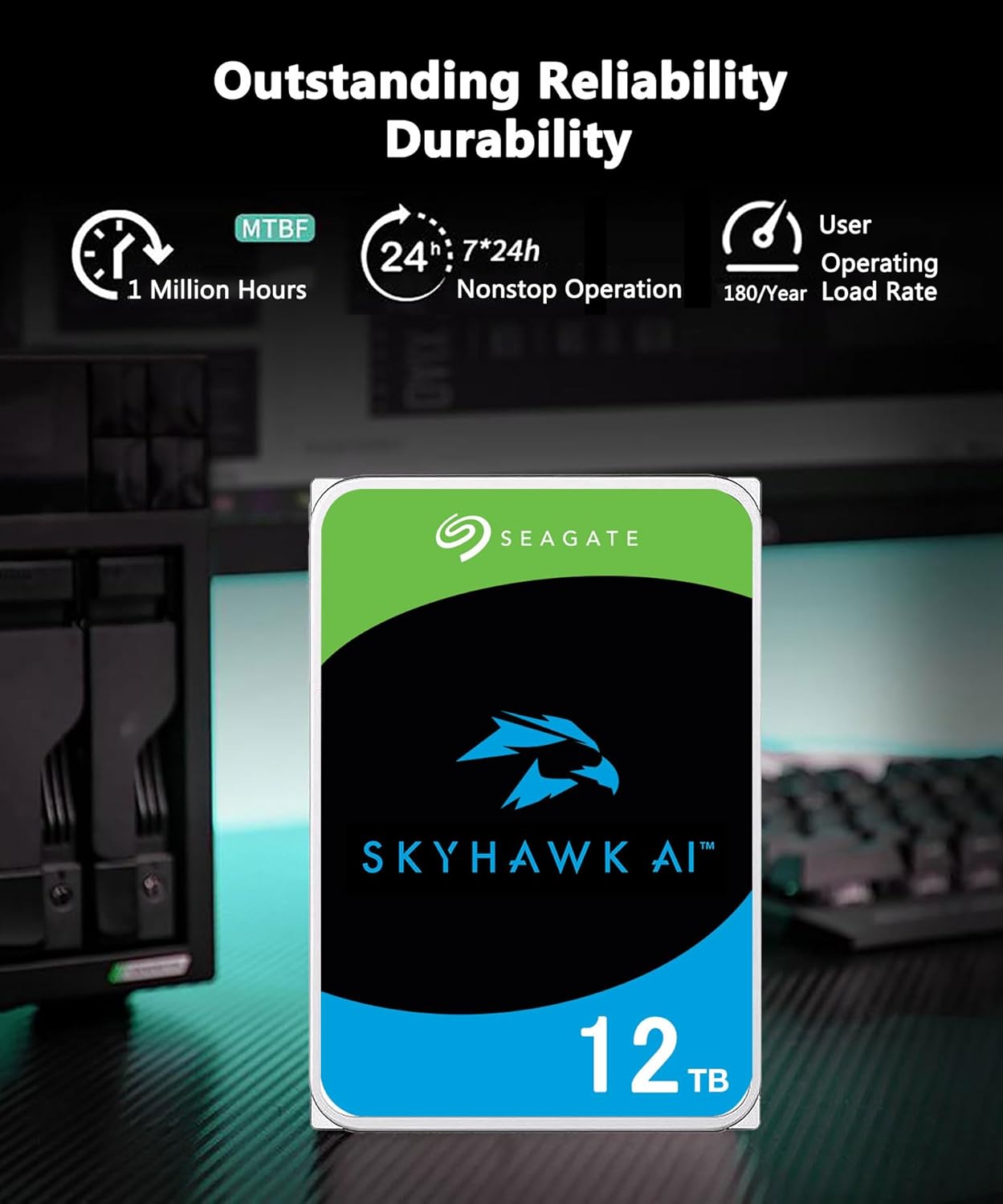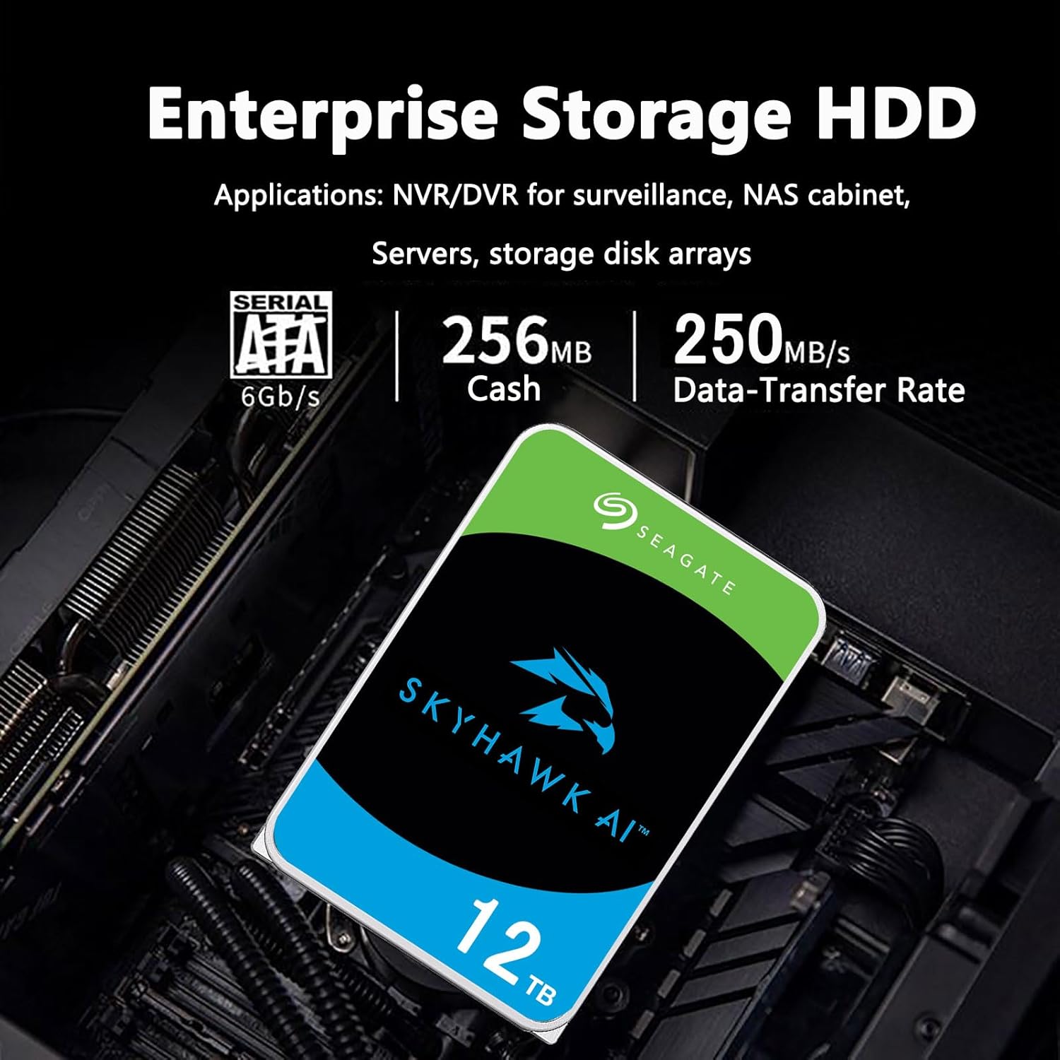 Seagate Skyhawk AI 12TB HDD 3.5 inches ATA 6GB/S 7200PRM 256 MB cache for the internal hard drive NAS for DVR NVR Security Camera Application Optimization (renewed)
