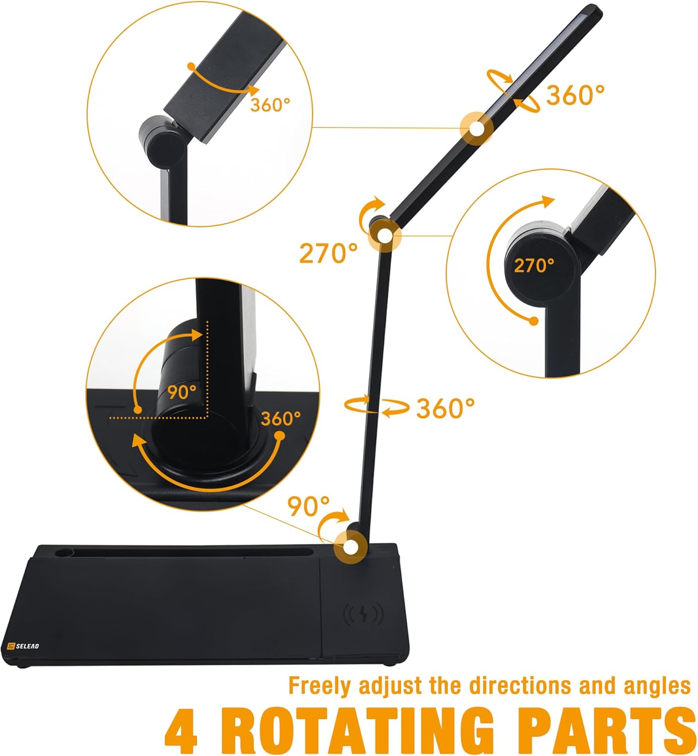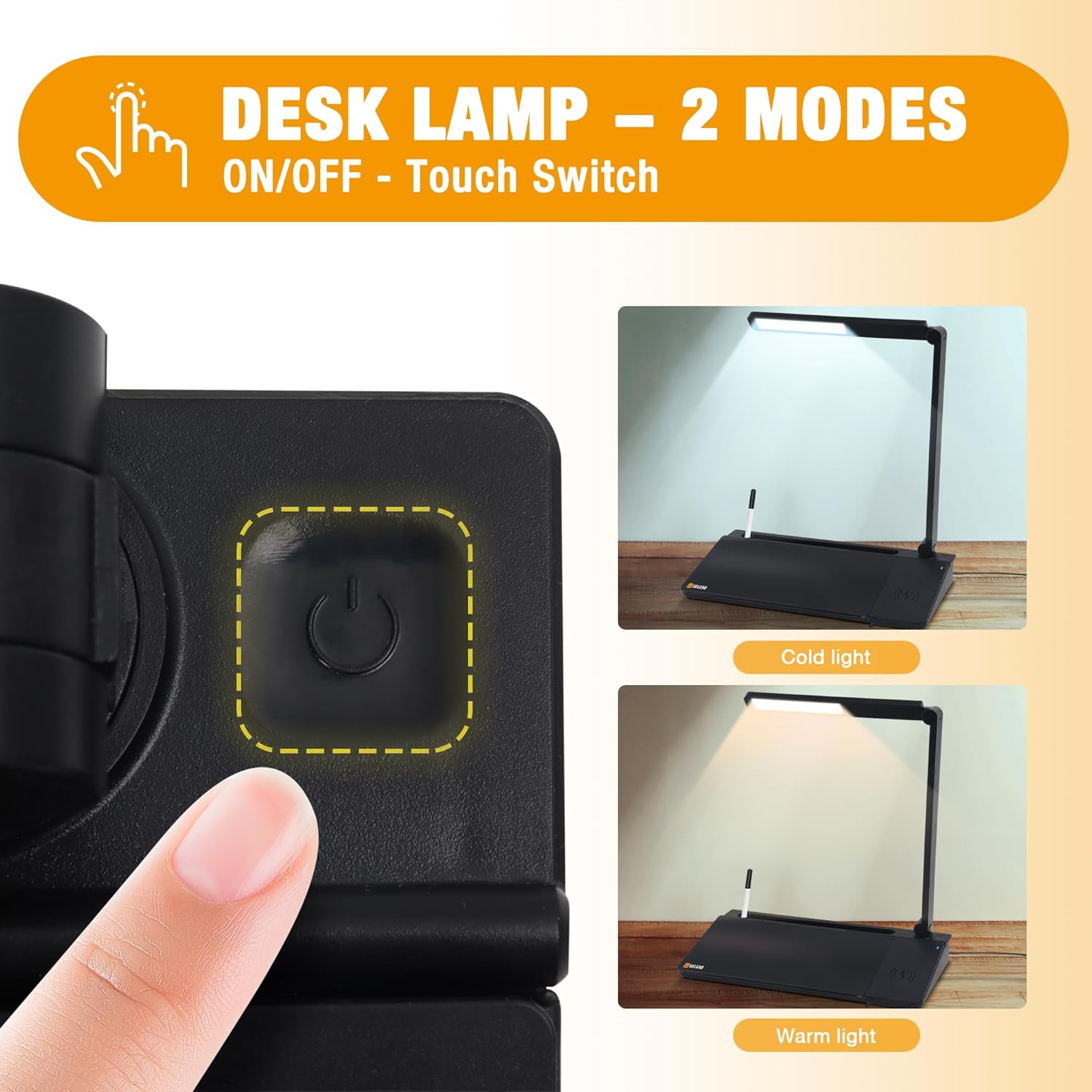 💡 DESK LAMP: Fingerprint touch switch, very easy to operate. It contains two modes of warm light and cold light to meet your different scenarios. 4 rotating parts, freely adjust directions and angles for easy use.
