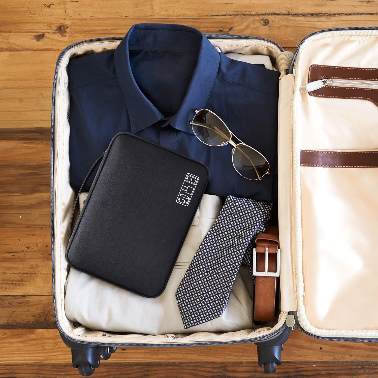Multi-pocket design: Contains multiple pockets to organize and store different types of electronic accessories and other travel essentials.