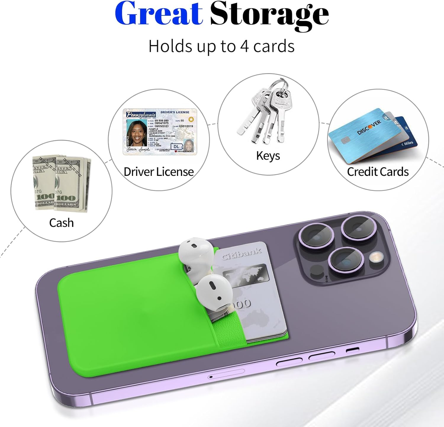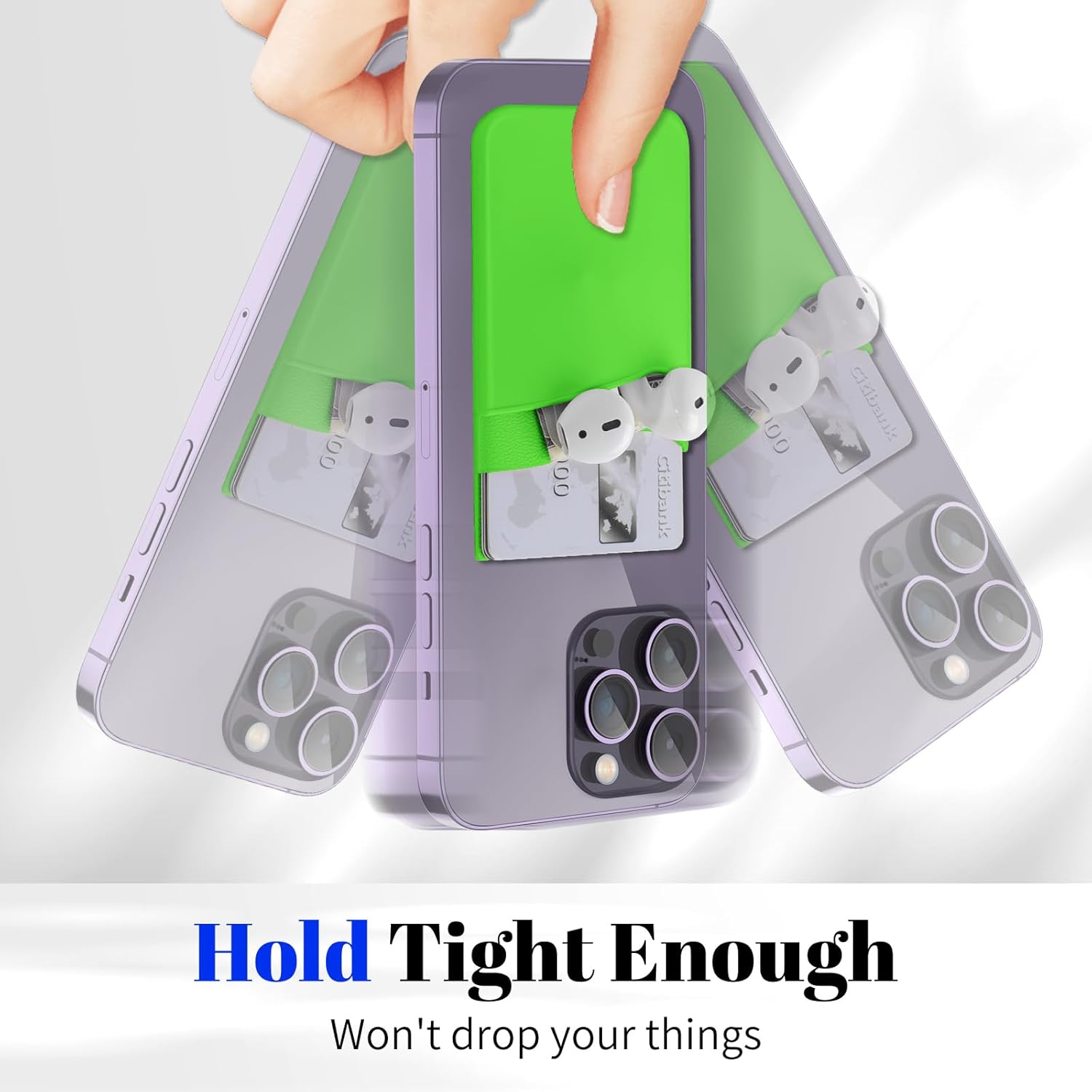 【Quality Material】The phone case card holder is made of high-quality non-slip silicone. It is sturdy and durable enough to keep its shape and cards will not fall out.