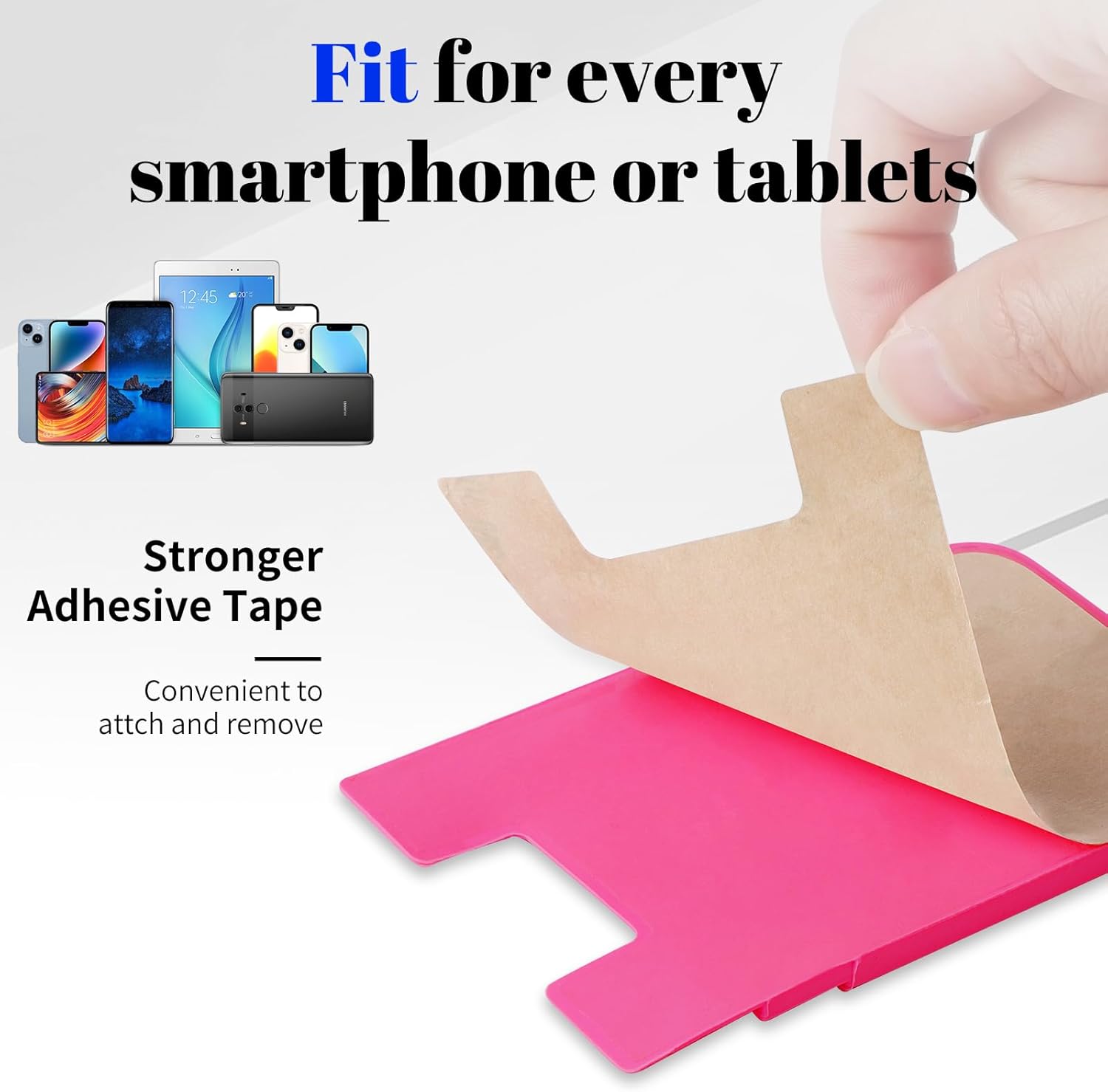 【Easy to Install and Use】Easy to use, peel off the back cover of the phone card holder and stick it on the back of your phone, then done. With the strong sticker, it can be stuck on any smooth surface and hold things firmly. 📵【***Notice】: The hand phone holder is NOT suitable for cases such as: Liquid Silicone/3D Bump/Leather/Glass!