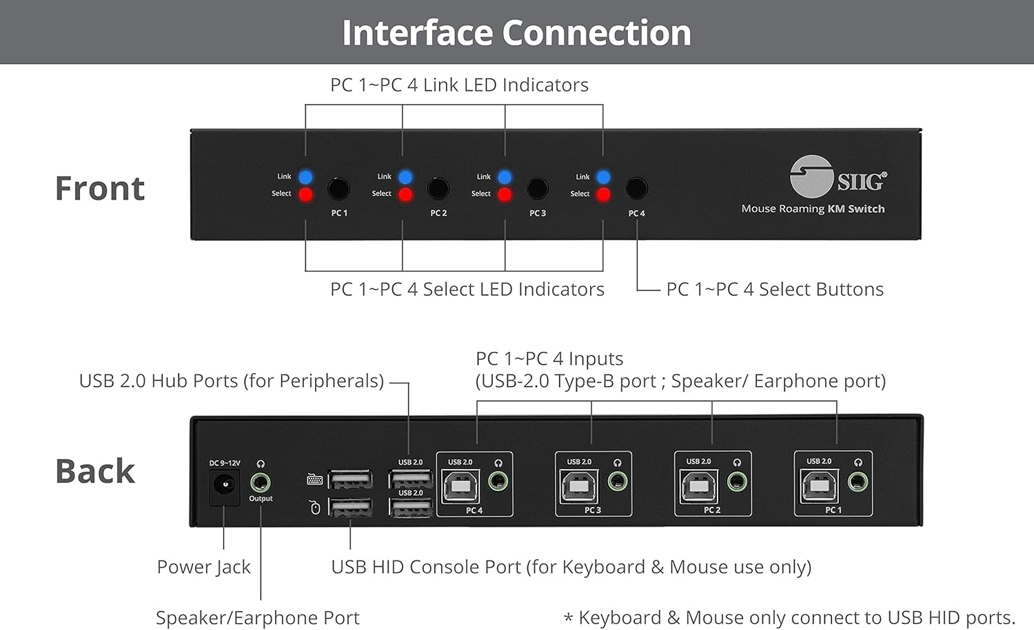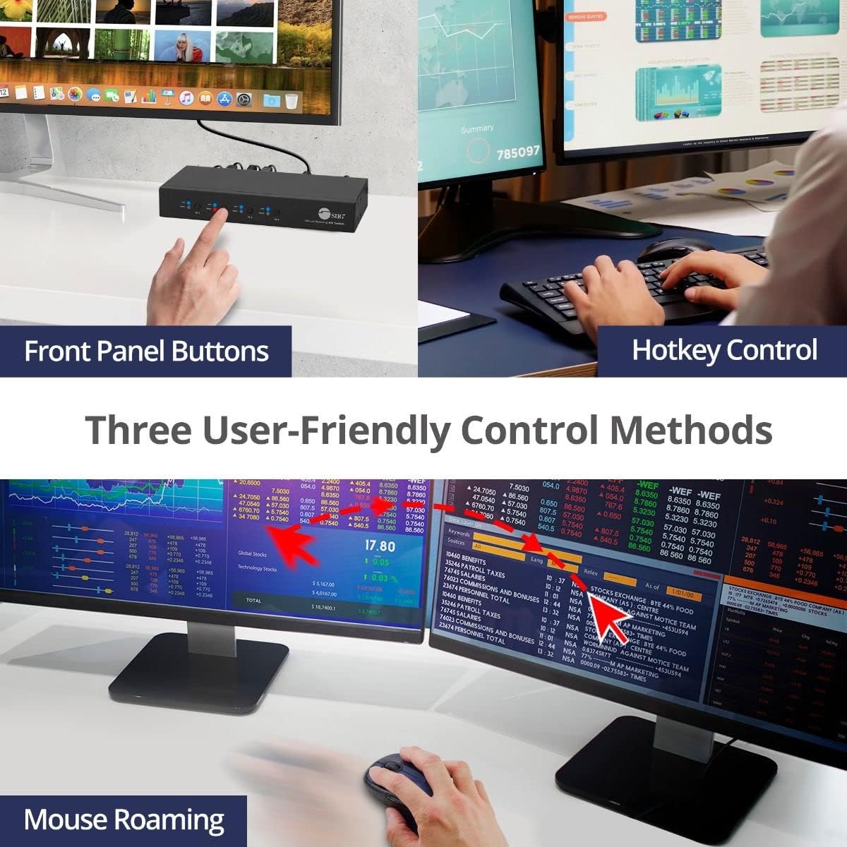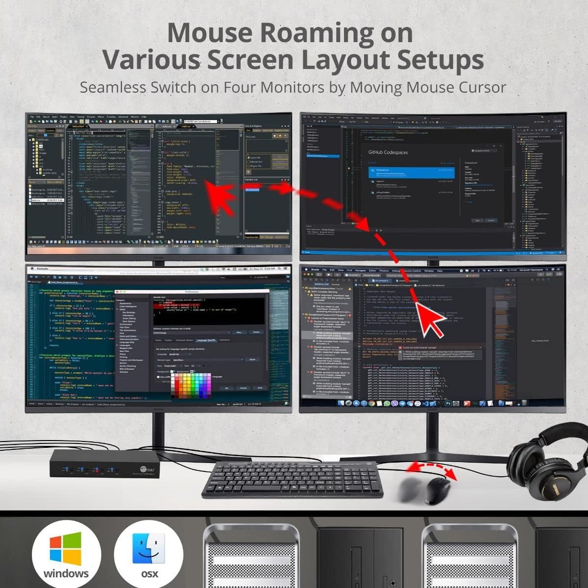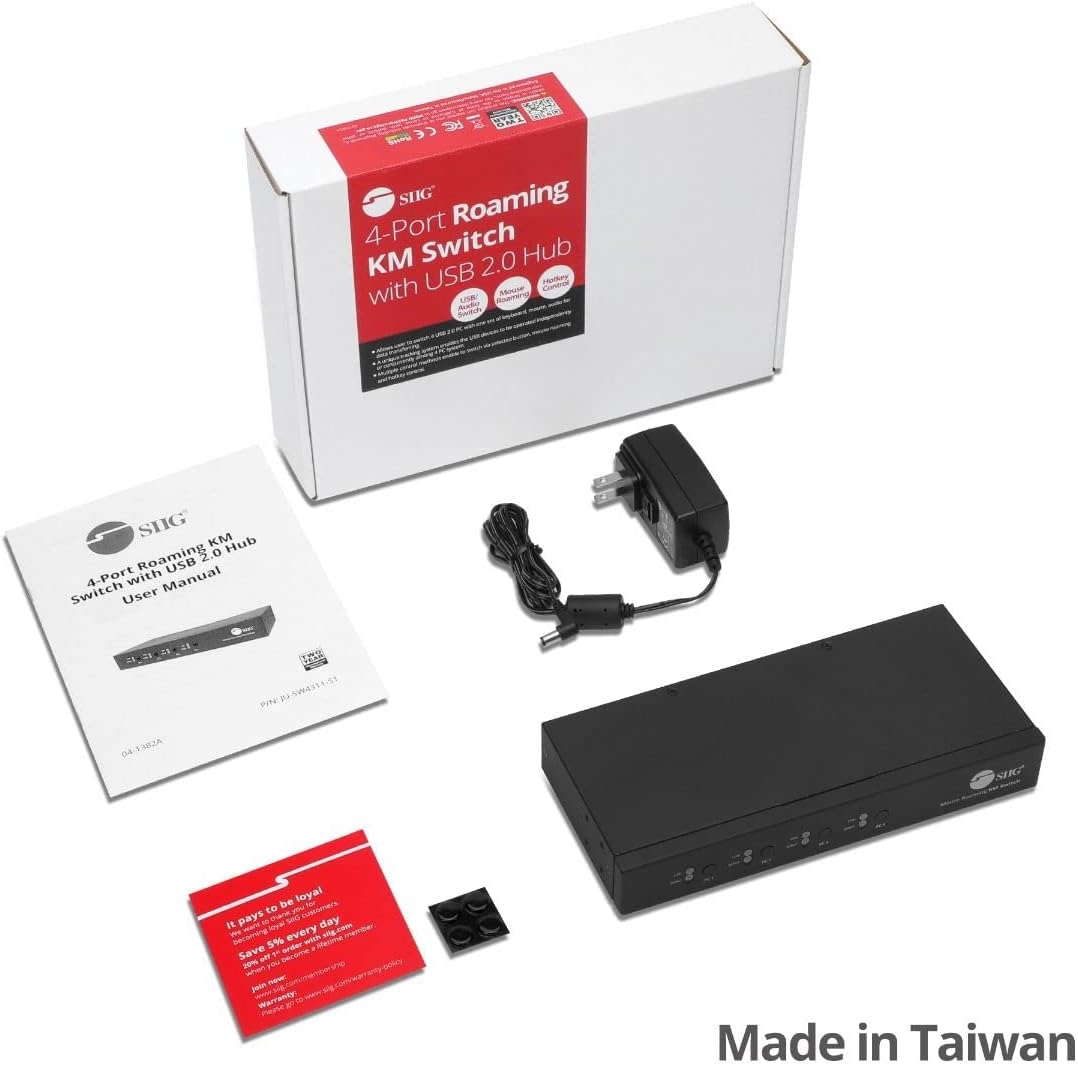 ✅ This 4-Port mouse roaming KM switch, allows you to share one set of keyboard, mouse, audio and USB peripherals among 4 USB PC system. You can select which PC you want to control by push button, hotkeys or mouse roaming (Moving the mouse cursor from 1 display window to another)
